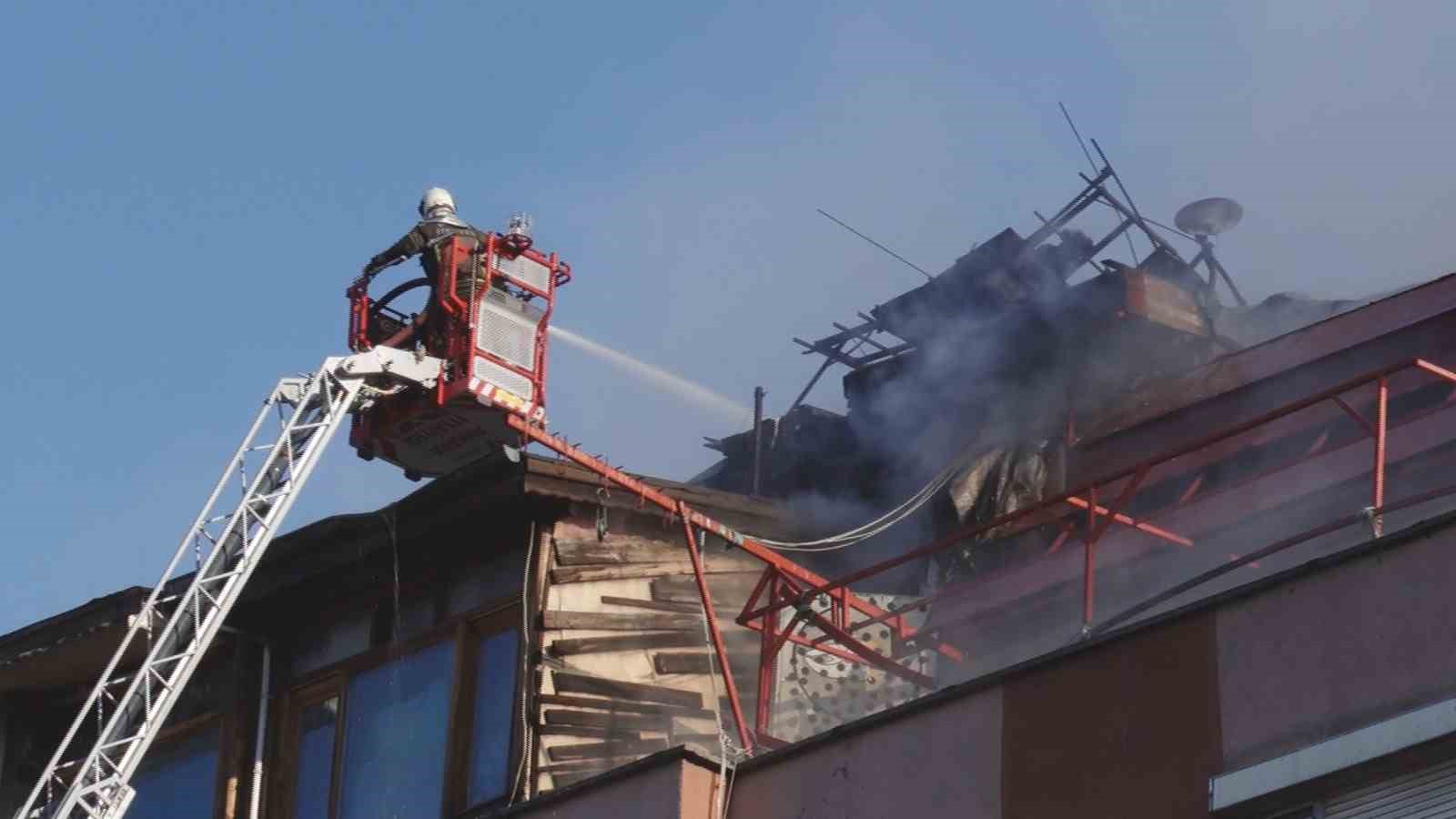 Binanın çatı katında hasar meydana geldi. Çıkan yangınla ilgili inceleme başlatıldı.