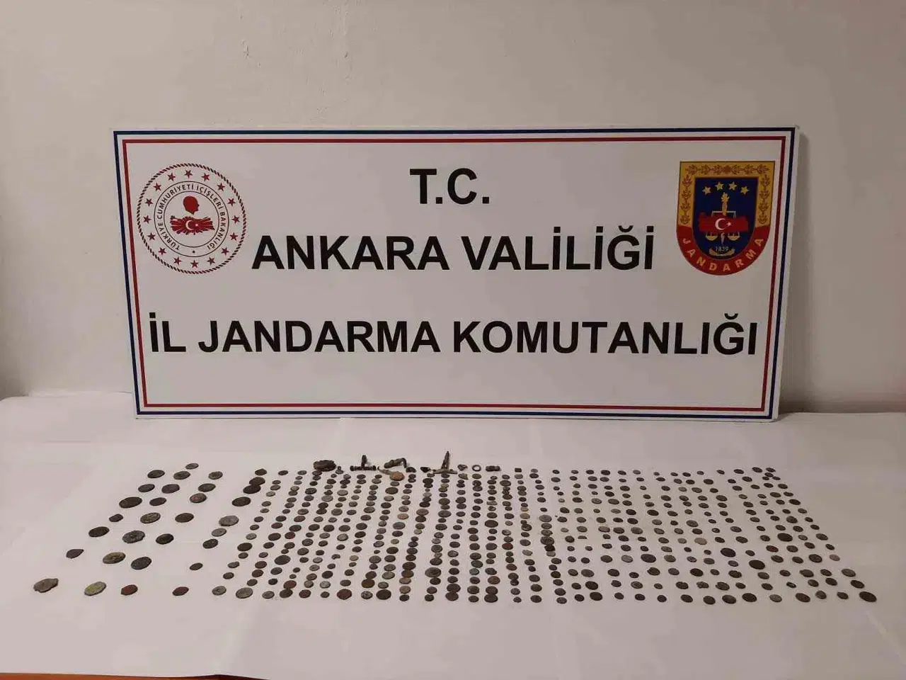 Ankara’da jandarma ekipleri tarafından düzenlenen operasyonda 530 parça tarihi eser niteliği taşıyan obje ve sikke ele geçirildi, 2 kişi gözaltına alındı.