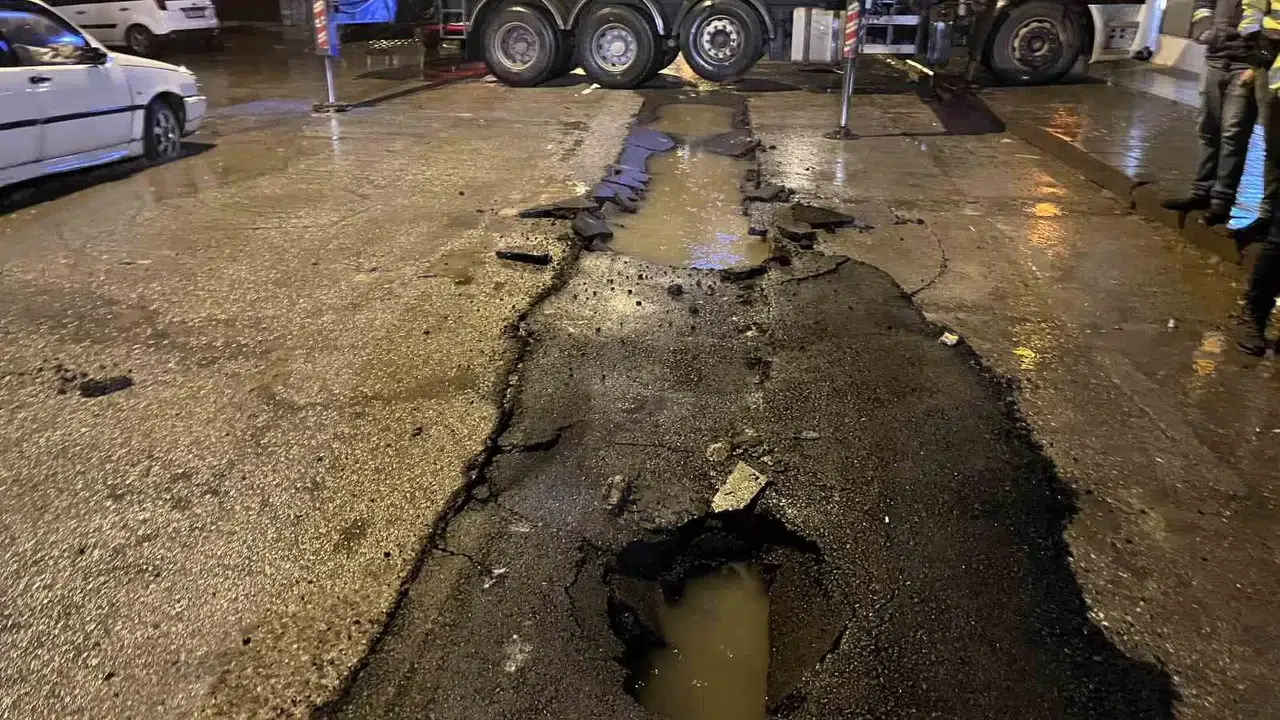 Ankara’da Yağmur Nedeniyle Yol Çöktü, Çöp Kamyonu Askıda Kaldı