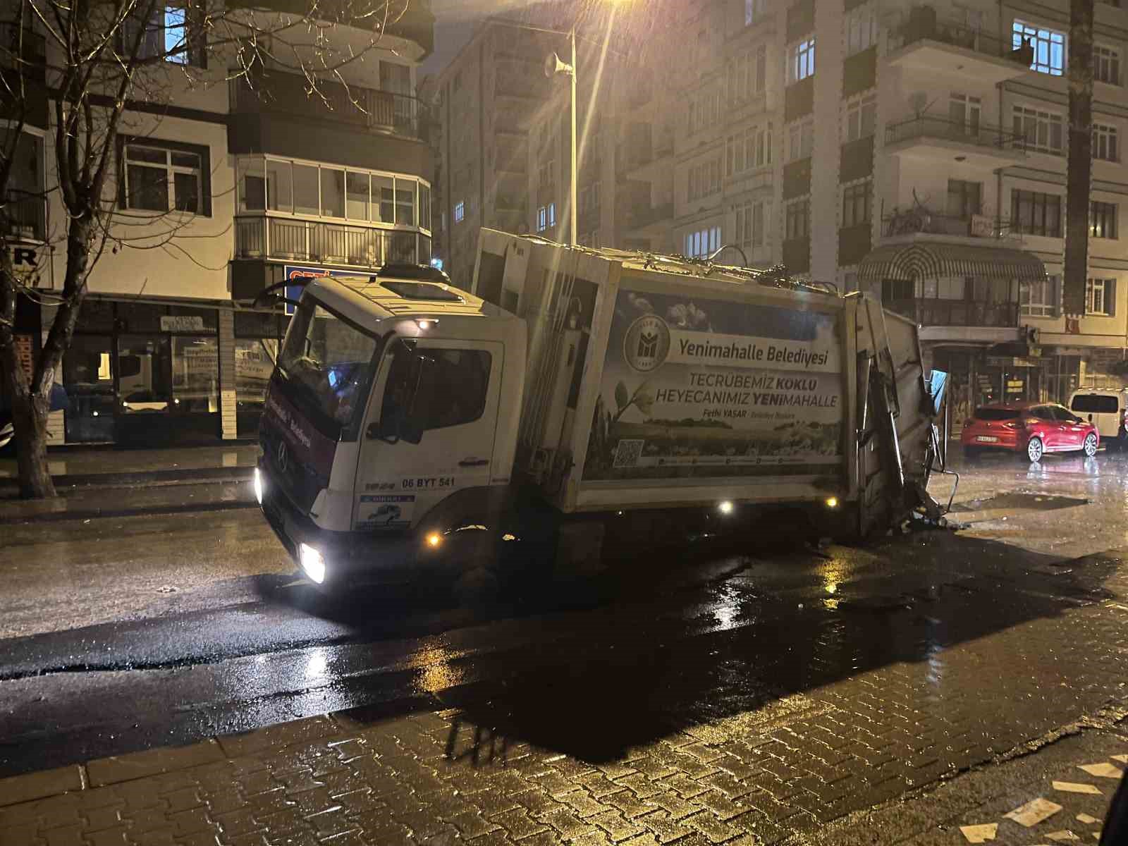 Olay akşam saatlerinde Yenimahalle ilçesi Demetevler Mahallesi 361. Cadde üzerinde meydana geldi. Ankara’da etkili olan yağışın ardından Yenimahalle Belediyesine ait çöp kamyonu çöp toplarken, yolun yama yapılmış kısmı çöktü. Yolun çökmesinin ardından çöp kamyonu askıda kaldı. Sağ tekerlekleri havada kalan kamyon Ankara Büyükşehir Belediyesi ve Yenimahalle Belediyesi ekiplerinin çalışmaları sonucu vinç yardımı ile kurtarıldı.