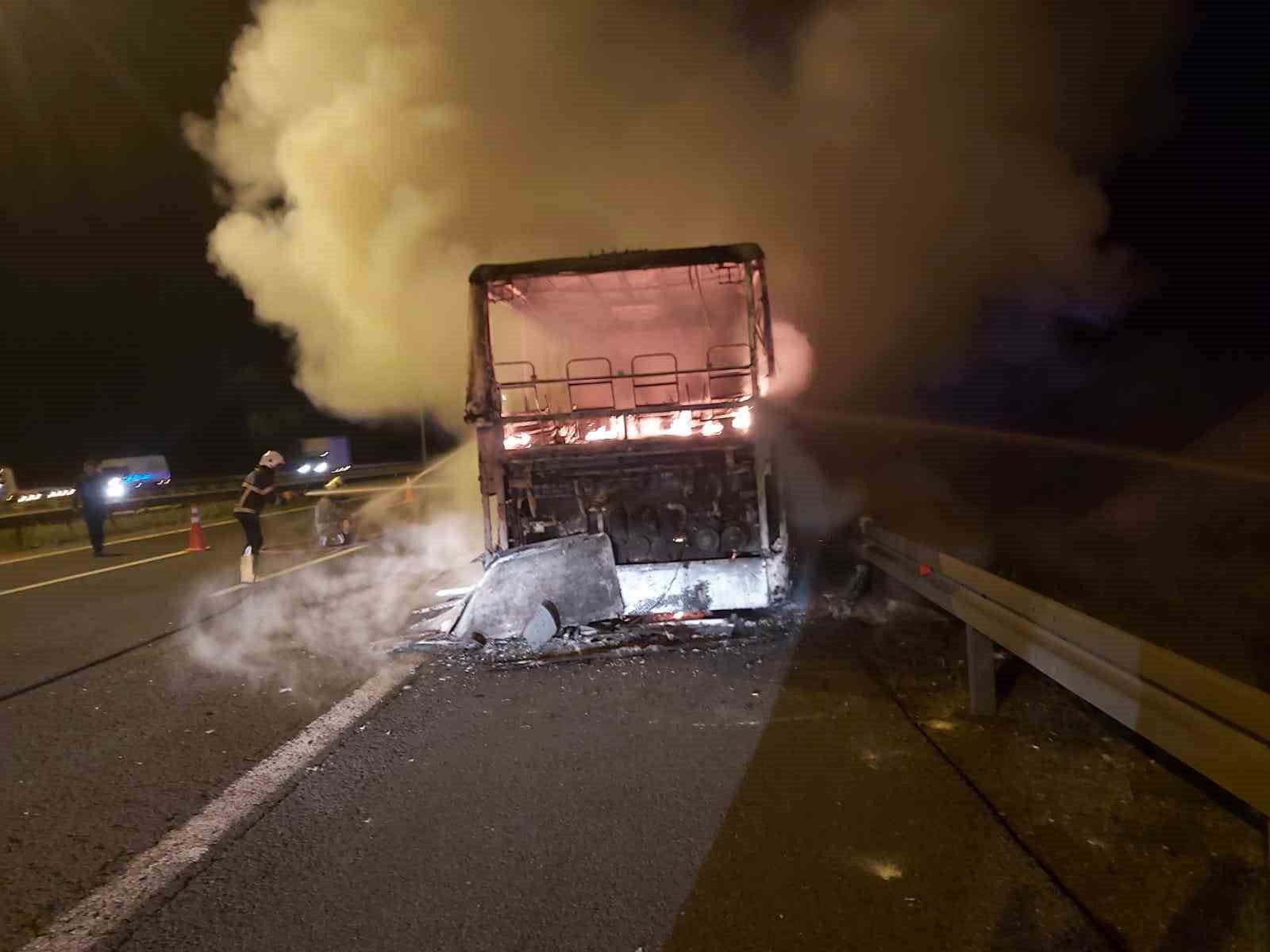 Ankara-Bolu karayolunda seyir eden yolcu otobüsü alevlere teslim oldu.