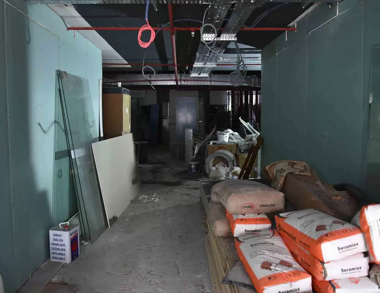 Toplam 5 bin 395 metrekare alan üzerindeki çalışmaların tam gaz devam ettiği 7 katlı binanın e-spor merkezi olacak şekilde elektrik, mekanik ve mimari olarak tadilatı da yapıldı.