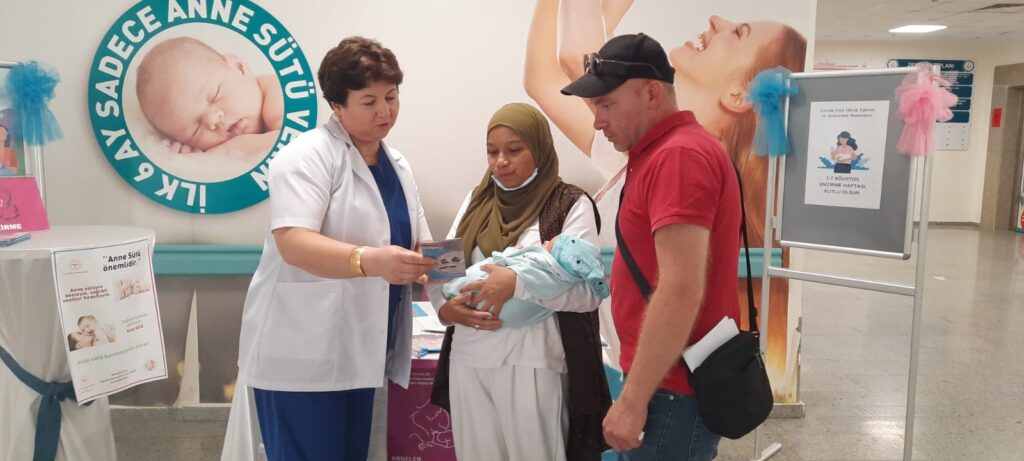 Hastanemiz Anne ve Bebek Dostu Hastane olup annelerimize doğum öncesi, doğum sırası ve doğum sonrasında emzirme eğitimi almış ebe-hemşirelerimiz tarafından eğitim verilmektedir. Hastanemizde taburcu olan annelerimizin emzirme ile ilgili problemleri olduğu zaman başvurabilecekleri Emzirme Danışmanlığı Polikliniği mevcut olup, Hemşire Nurcan EKİCİ tarafından uygulamalı eğitimler verilmektedir.” (Zahide Yasemin Özden)