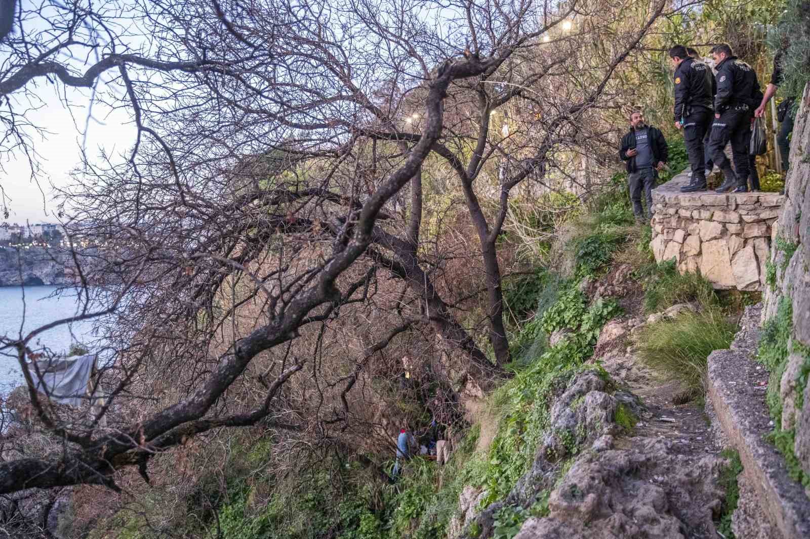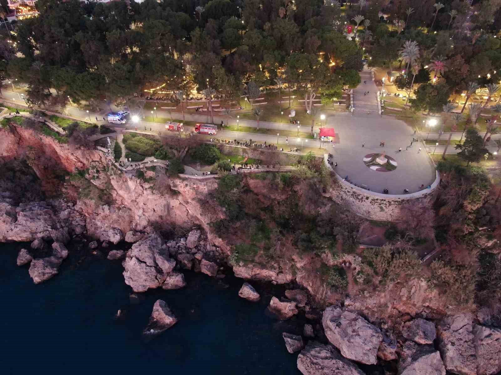 Olay, saat 18.15 sırasında Muratpaşa ilçesi Karaoğlan Parkı falezlerde meydana geldi. Falezlerden deniz manzarası seyreden 26 yaşındaki Mehmet Ş., bir anda dengesini kaybederek 30 metre yükseklikteki falezlerden düştü. Ağaçlara takılarak falezlerin yarısında kalan Mehmet Ş.’yi görenler durumu 112 Acil Çağrı Merkezi’ne bildirdi. İhbarla adrese sağlık, itfaiye, polis, deniz polisi ekipleri sevk edildi.
