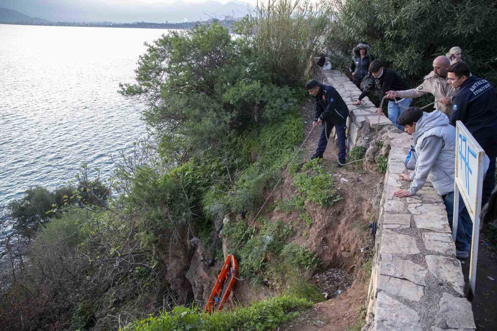 Antalya’da düştüğü 30 metre yüksekliğindeki falezlerin orta bölümündeki kayalık alanda mahsur kalan şahıs kurtarıldı.