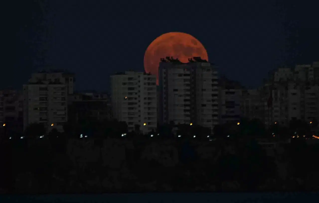 Antalya’da sıcaktan bunalarak Konyaaltı Sahili’ne akın eden vatandaşlar, Süper Ay manzarasını hayranlıkla izledi.