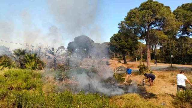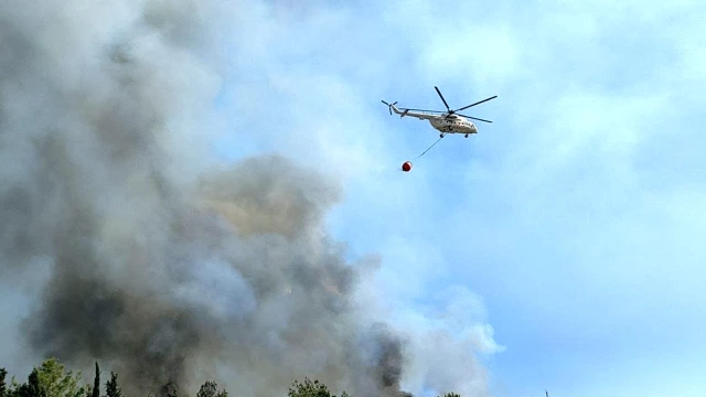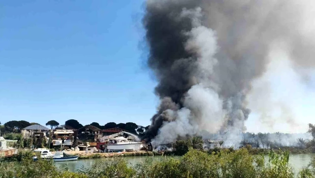 Antalya'nın Aksu ilçesinde otluk alanda başlayan yangın, karada tadilatı yapılan lüks teknelere, oradan da ormanlık alana sıçradı. Yangını söndürme çalışmaları devam ediyor.