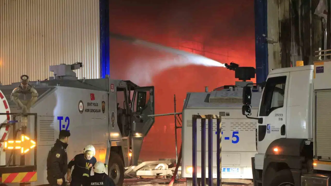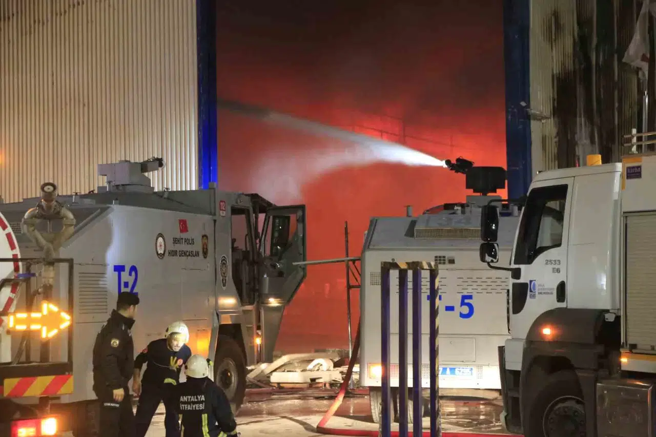 Yangın, saat 19.15 sıralarında Konyaaltı ilçesi sınırları içinde bulunan Serbest Bölge’de yat imalatı yapılan bir tersanede çıktı. İhbar üzerine olay yerine Antalya Büyükşehir Belediyesine bağlı 15 itfaiye aracı, Orman Bölge Müdürlüğüne bağlı arazözler, AFAD ekipleri, polis ve TOMA’lar sevk edildi. Belirtilen adrese gelen ekipler kapalı vaziyetteki tersaneye müdahale etmeye başladı. Ekipler ilk olarak dış cepheyi spiral makinesiyle keserek alevlere müdahalede bulunmaya başladı. Polis ekipleri yangın bölgesinde güvenlik şeridi oluşturdu.