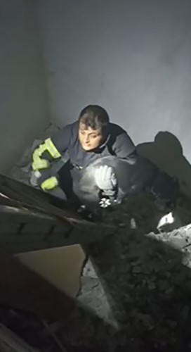 Hatay’ın Hassa ilçesinde apartman boşluğuna düşen köpeğin itfaiye ekipleri tarafından kurtarıldığı anlar yürekleri ısıttı.