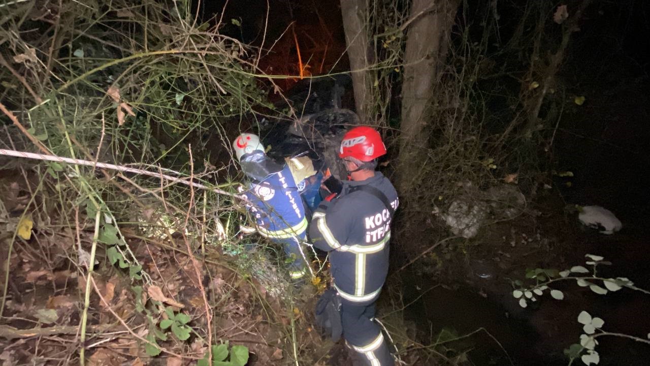Kocaeli’nin Başiskele ilçesinde kontrolden çıkan otomobil, 35 metrelik uçurumdan dere yatağına uçtu. Kazada araçta sıkışarak yaralanan sürücüyü itfaiye ekipleri kurtardı.