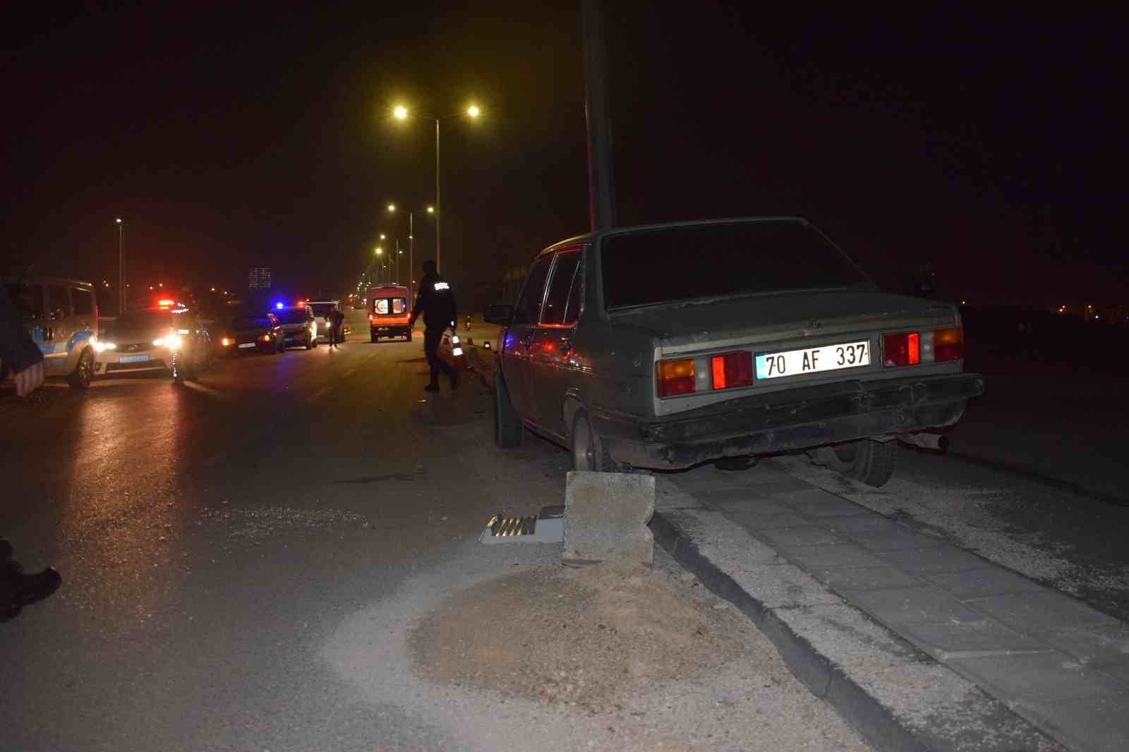Kaza, gece saat 23.45 sıralarında Hamidiye Mahallesi Yeni Sanayi Sitesi yolunda meydana geldi. Edinilen bilgiye göre, R.K. yönetimindeki 70 AF 337 plakalı otomobil, sürücüsünün direksiyon hakimiyetini kaybetmesi sonucu kaldırıma çıkarak aydınlatma direğine çarptı. Kazada sürücü R.K. yaralandı. Çevredekilerin ihbarı üzerine olay yerine sağlık ve polis ekipleri sevk edildi. Yaralı sürücü ambulansla kaldırıldığı Karaman Eğitim ve Araştırma Hastanesinde tedavi altına alındı. MEDAŞ ekibi, otomobilin çarpması sonucu eğilerek lambaları kırılan aydınlatma direğinde incelemede bulunarak hasar tespiti yaptı. Kaza yapan otomobil daha sonra çağrılan çekici ile olay yerinden kaldırılırken, kazayla ilgili soruşturma başlatıldı.