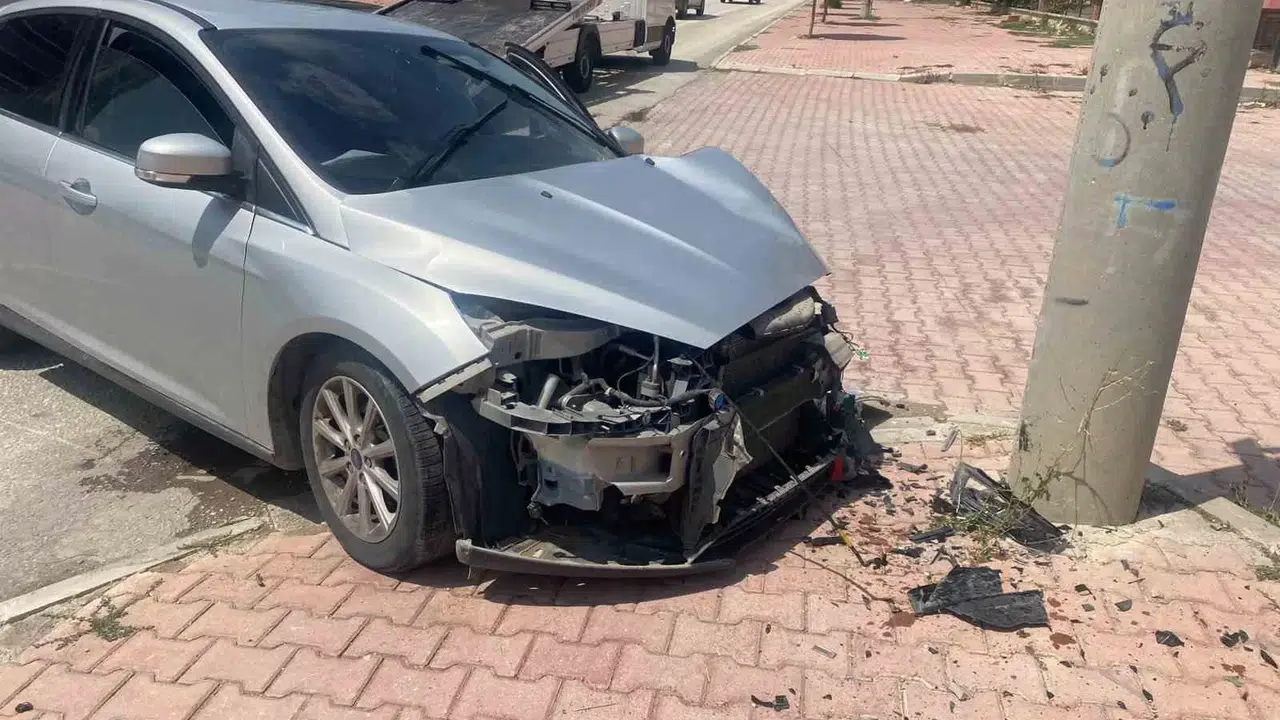 Araba Direğe Çarptı, Şoför Yaralandı
