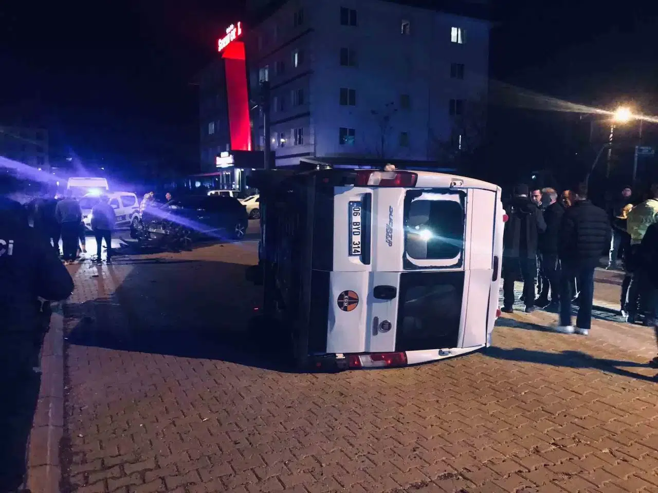 Olay, Beşkavaklar Mahallesi’nde Horasan Sokak üzerinde meydana geldi. Edinilen bilgiye göre, ara sokaktan Horasan Sokak’a girmek isteyen Semih N. idaresindeki 14 ABD 004 plakalı otomobil ile Horasan Sokakta seyreden Muharrem S. yönetimindeki 06 BYD 314 plakalı minibüs çarpıştı. Çarpışmanın etkisiyle Fiat Ducato marka minibüs devrildi. Meydana gelen kazada sürücüler hafif şekilde yaralandı. İhbar üzerine bölgeye sağlık ve polis ekipleri sevk edildi. Yaralanan Muharrem S. ve Semih N. ambulanslarda yapılan ilk müdahalenin ardından hastaneye kaldırıldı. Olayla ilgili soruşturma başlatıldı.