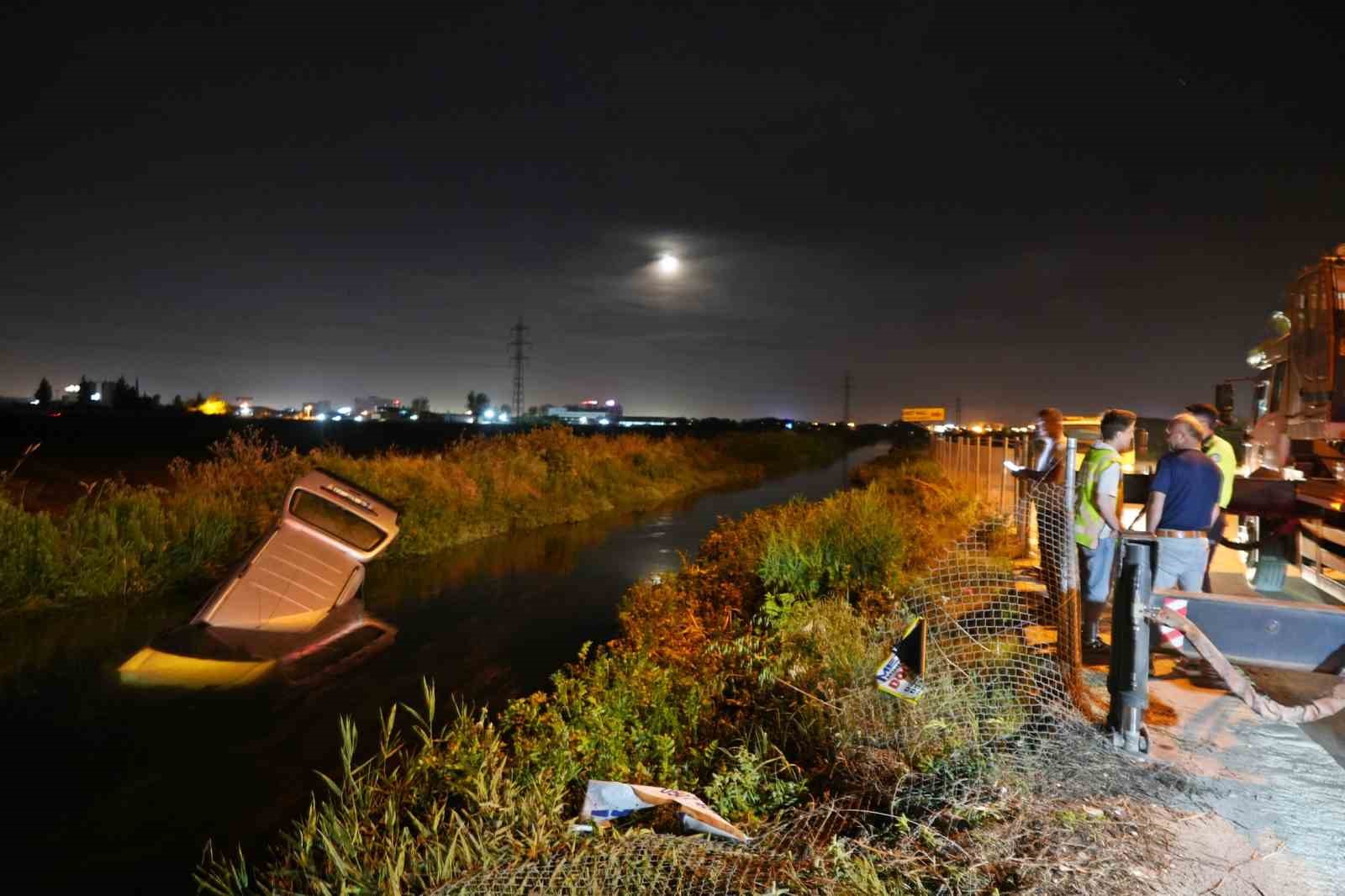 Polis ekipleri sürücüyü bulmak için çalışma başlatırken, araç çekiciyle su kanalından çıkartılarak otoparka götürüldü.