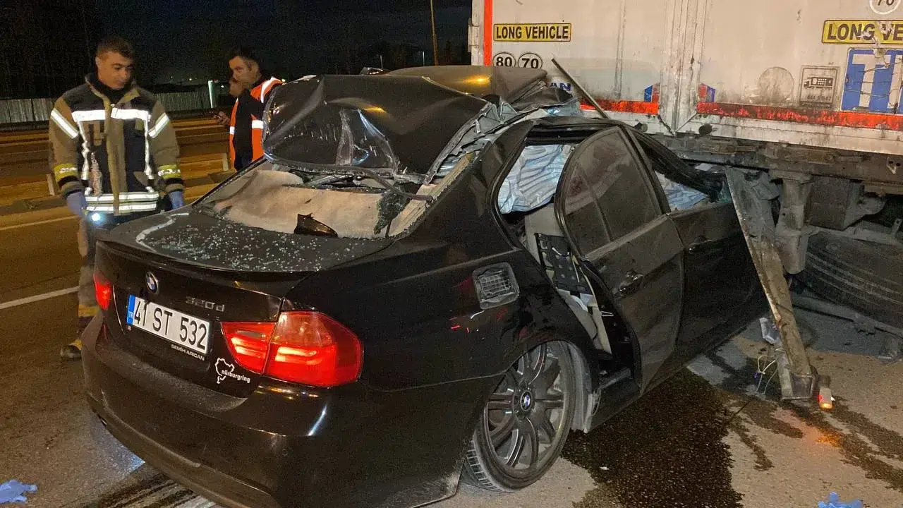 Kaza, 06.40 sıralarında Ovacık Mahallesi D-100 kara yolu geçişi Ankara istikametinde meydana geldi. T.A. (25) idaresindeki 41 ST 532 plakalı BMW marka otomobil, iddiaya göre aşırı hız sebebiyle sürüsünün kontrolünden çıkarak yol kenarındaki bariyere çarptı. Savrulan otomobil aynı istikamette giden Ü.A. hakimiyetindeki 25 LT 445 plakalı DAF marka tırın dorsesinin altına girdi. Çarpışmanın şiddetiyle tır ve otomobil 200 metre sürüklendi. Kazayı gören bir diğer tır sürücüsü, aracını durdurarak 112 Acil Çağrı Merkezine ihbarda bulundu. İhbar üzerine adrese itfaiye, sağlık ve polis ekipleri sevk edildi. İtfaiye ekiplerince T.A. sıkıştığı otomobilden çıkartıldı. Sağlık ekiplerince ilk müdahalesi yapılan T.A., özel bir hastaneye sevk edildi. T.A.’nın sağlık durumunun ciddiyetini koruduğu öğrenildi. Öte yandan, kişisel bakım ürünleri yüklü tırın Kocaeli’den Mersin’e gittiği bildirildi. Polis, kazayla ilgili inceleme başlattı.