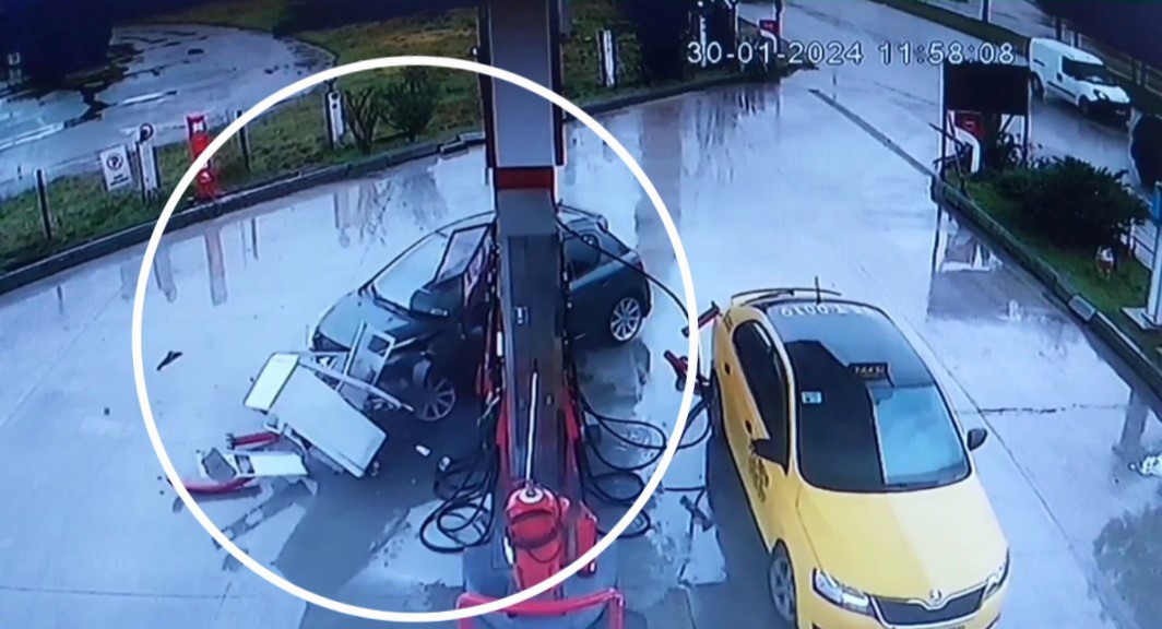 Samsun’da otomobilin yağmur dolayısıyla kayarak akaryakıt istasyonunun pompasına çarpması sonucu faciadan dönüldüğü kaza, güvenlik kamerası kamerası tarafından anbean görüntülendi.