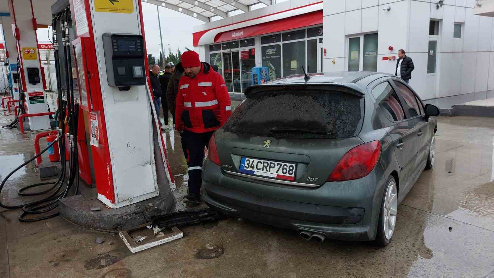 Kaza, Samsun’un İlkadım ilçesindeki bir akaryakıt istasyonunda bugün meydana geldi. Edinilen bilgiye göre, aracına akaryakıt almak için istasyona giriş yapan Emir Sultan R. idaresindeki 34 CRP 768 plakalı otomobil, yağmurdan dolayı ıslak ve kaygan zeminde kayarak akaryakıt istasyonundaki pompaya çarptı. Kazada yaralanan olmazken, pompada ve otomobilde maddi hasar meydana geldi. Kaza anı ise güvenlik kamerası tarafından saniye saniye görüntülendi.