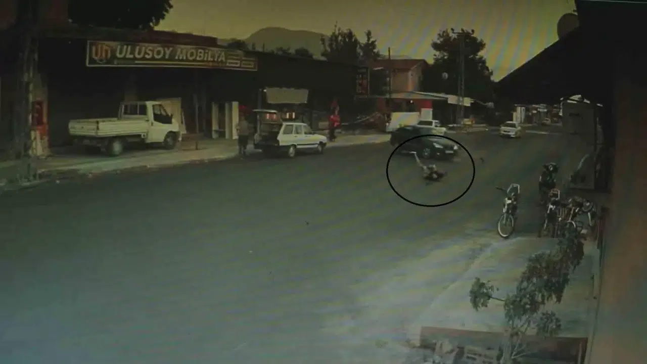 Hatay’da motosikletin, dönüş yapmak isteyen otomobile ok gibi saplandığı ve sürücünün metrelerce savrulduğu anlar güvenlik kamerasına yansıdı.