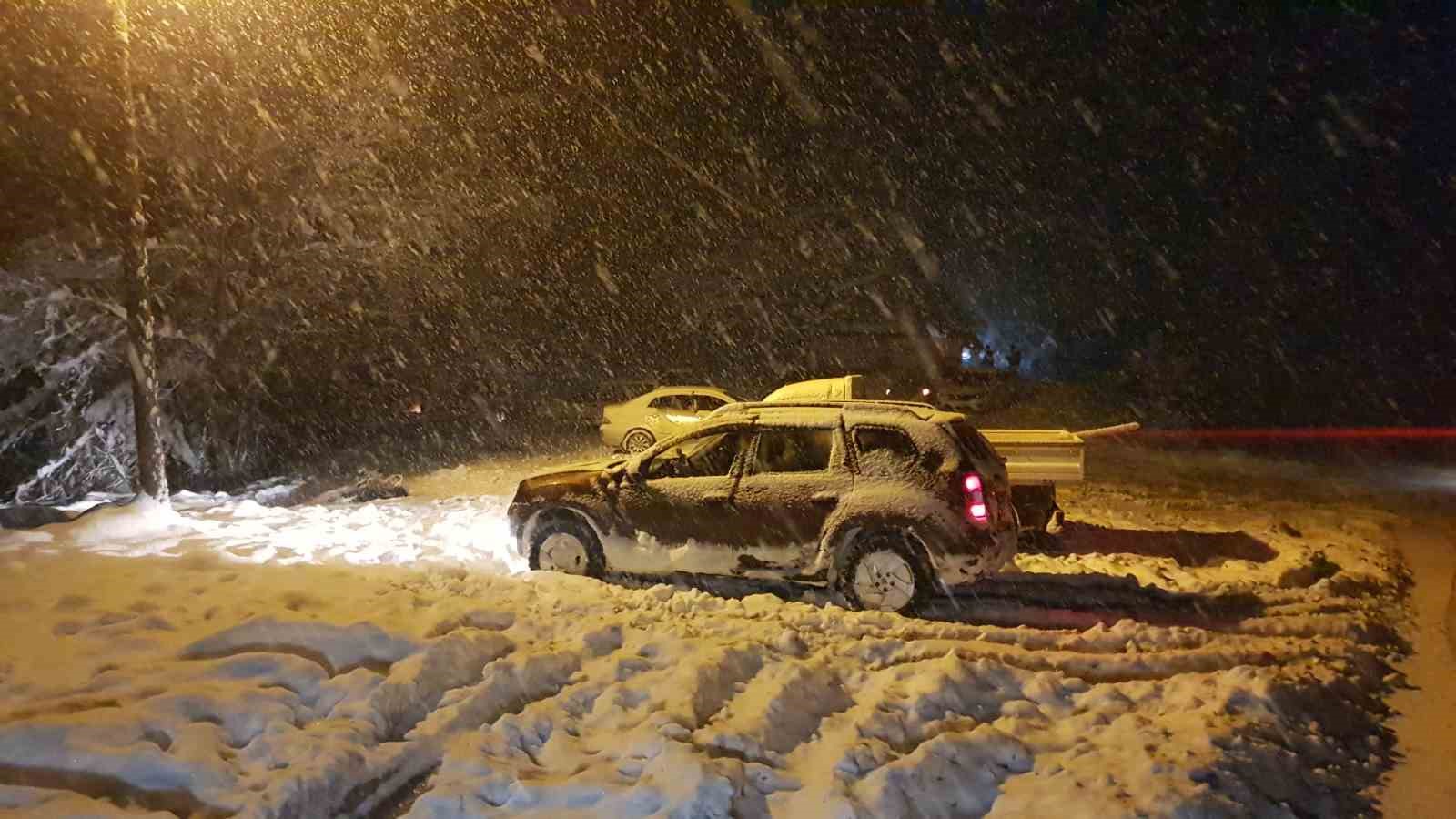 Meteoroloji Genel Müdürlüğü tarafından yapılan uyarıların ardından Karabük’ün yüksek kesimlerinde kar yağışı gecenin ilerleyen saatlerine kadar aralıksız devam ediyor. 1030 rakımlı Ahmetusta Geçidi mevkiinde yolların karla kaplanması üzerine bazı araçlar yolda kalırken kara yolları ekipler bölgede kar küreme ve tuzlama çalışmaları yapıyor.