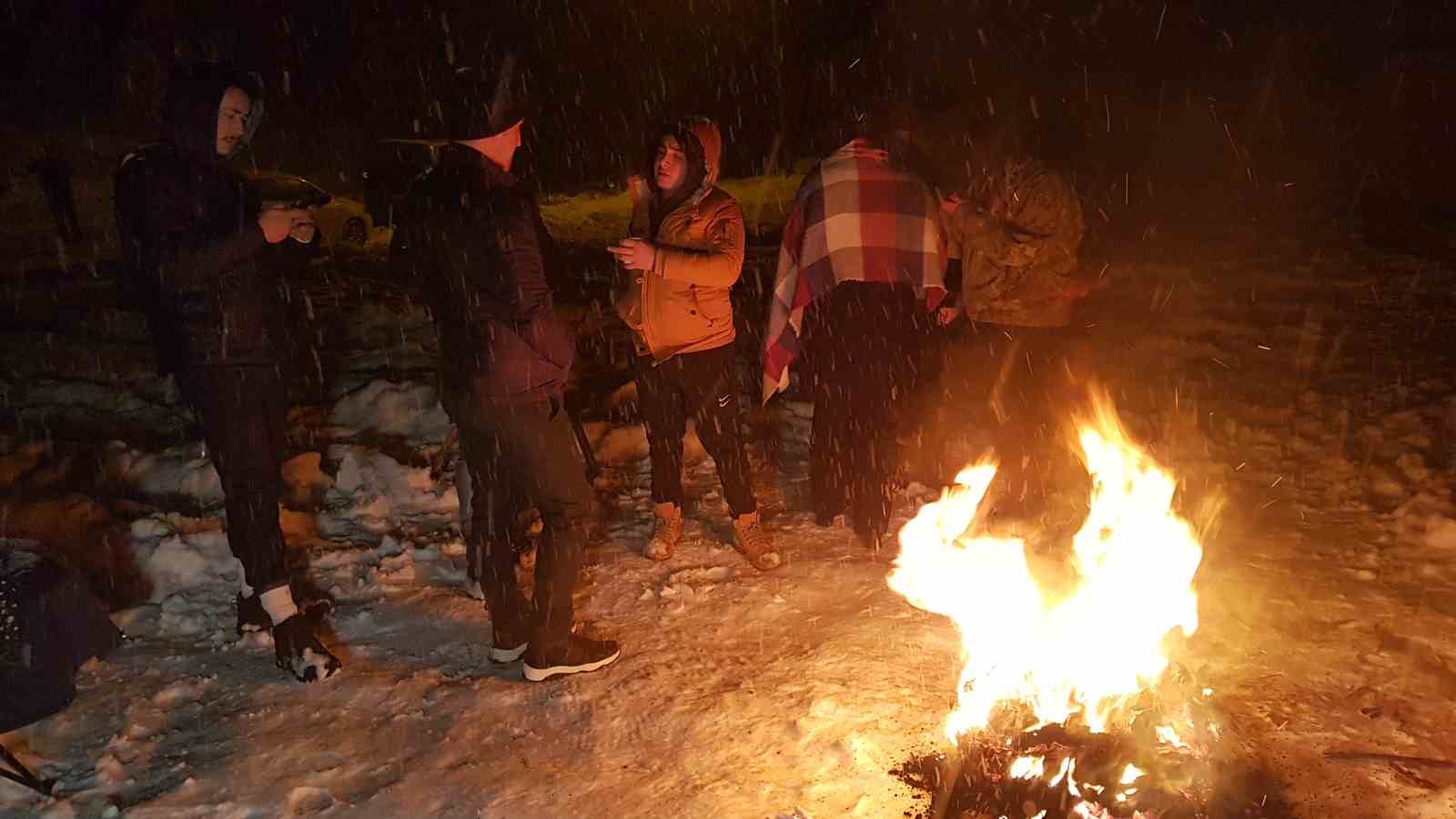 Kimi sürücülere zor anlar yaşatan kar yağışı kimilerinin de eğlencesi oldu. Karın keyfini çıkarmak isteyen vatandaşlar ateş yakıp kar topu oynadı.