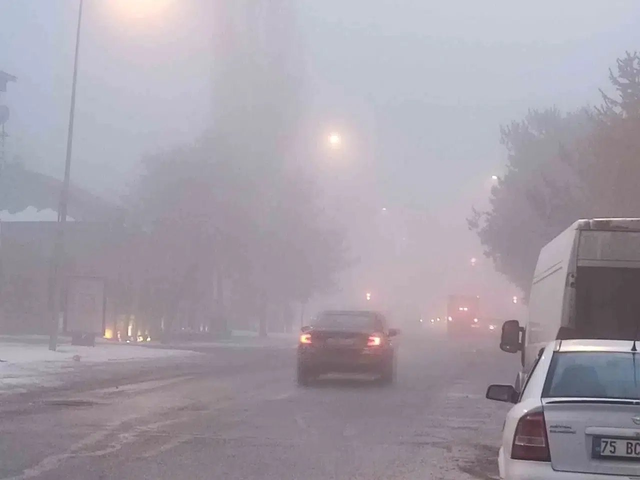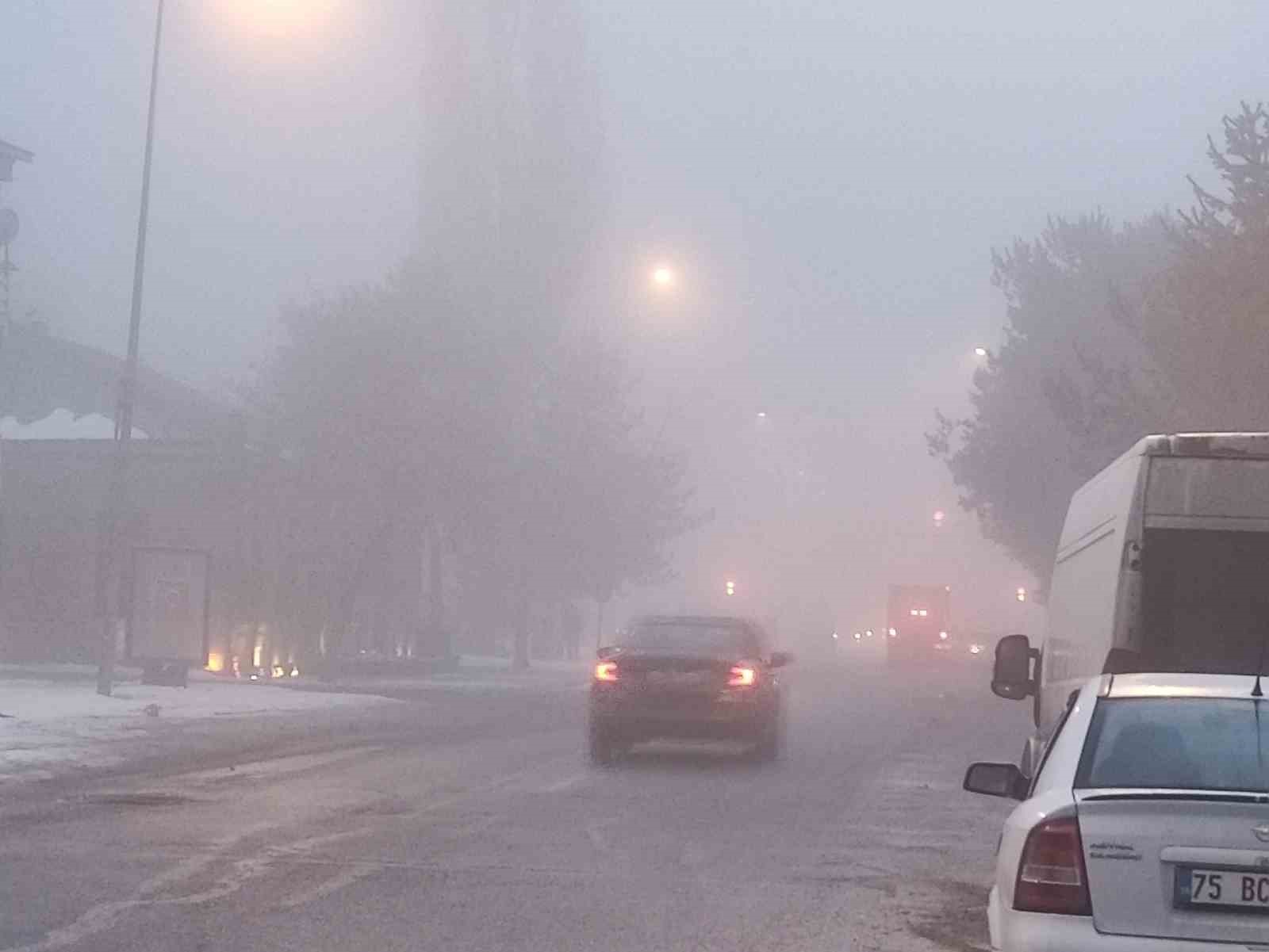 Ardahan’da kent merkezinde sabah saatlerinde oluşan sis, görüş mesafesini yer yer 20 metreye kadar düşürdü.