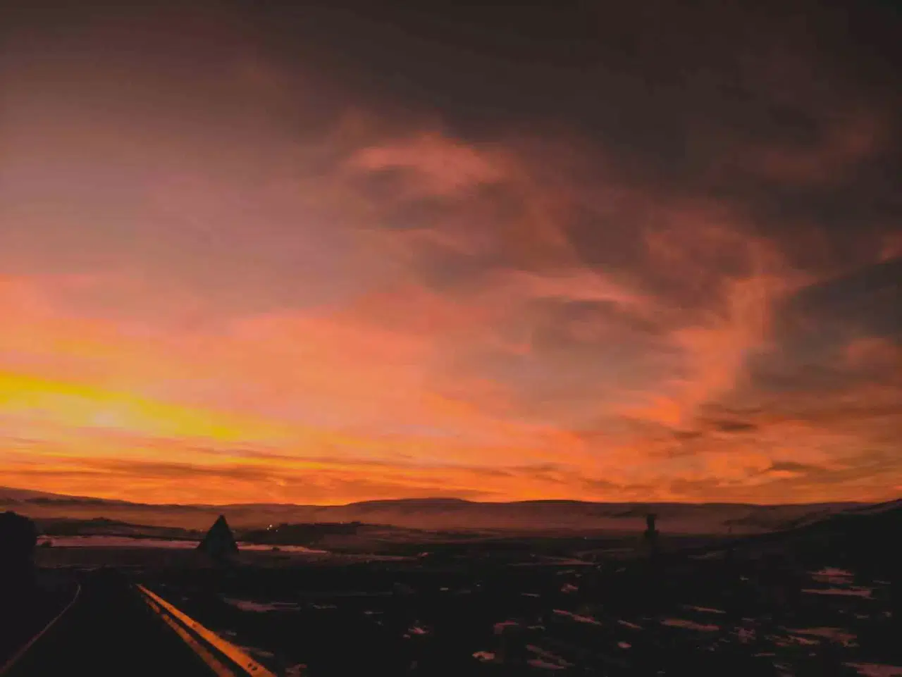 Ardahan’da sabah saatlerinde oluşan gün doğumuyla birlikte gökyüzü kızıla boyanırken, ortaya çıkan manzara mest etti. Ardahan-Kars kara yolunun Ortageçit köyünde güneşin yüzünü gösterdiği anda ortaya çıkan kızıllıkla gün doğumu görsel şölene döndü, kartpostallık görüntüler ortaya çıktı.