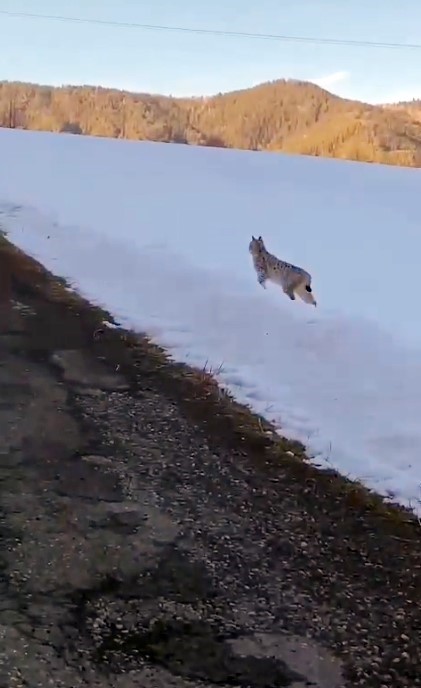 Kış aylarının çetin geçmesinden dolayı vaşak, yerleşim yerlerine kadar indi. Karlı arazide yiyecek arayan vaşağı gören vatandaşlar o anları cep telefonu kamerasıyla görüntüledi.