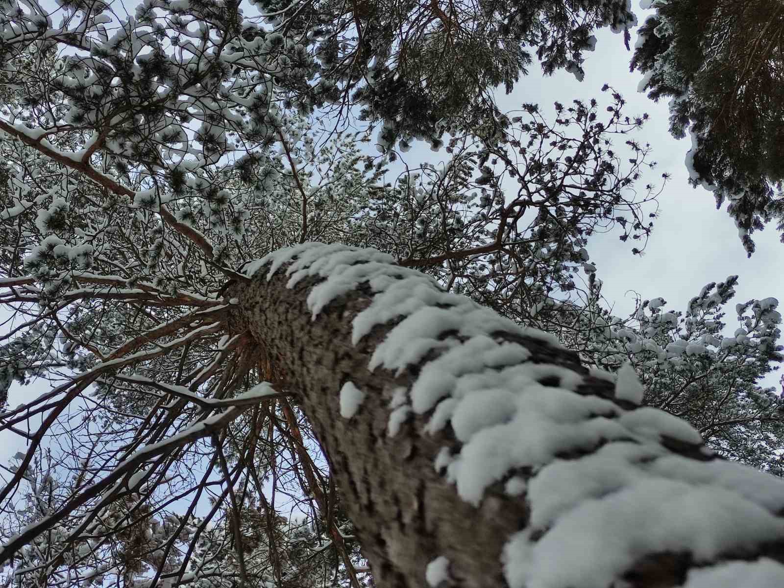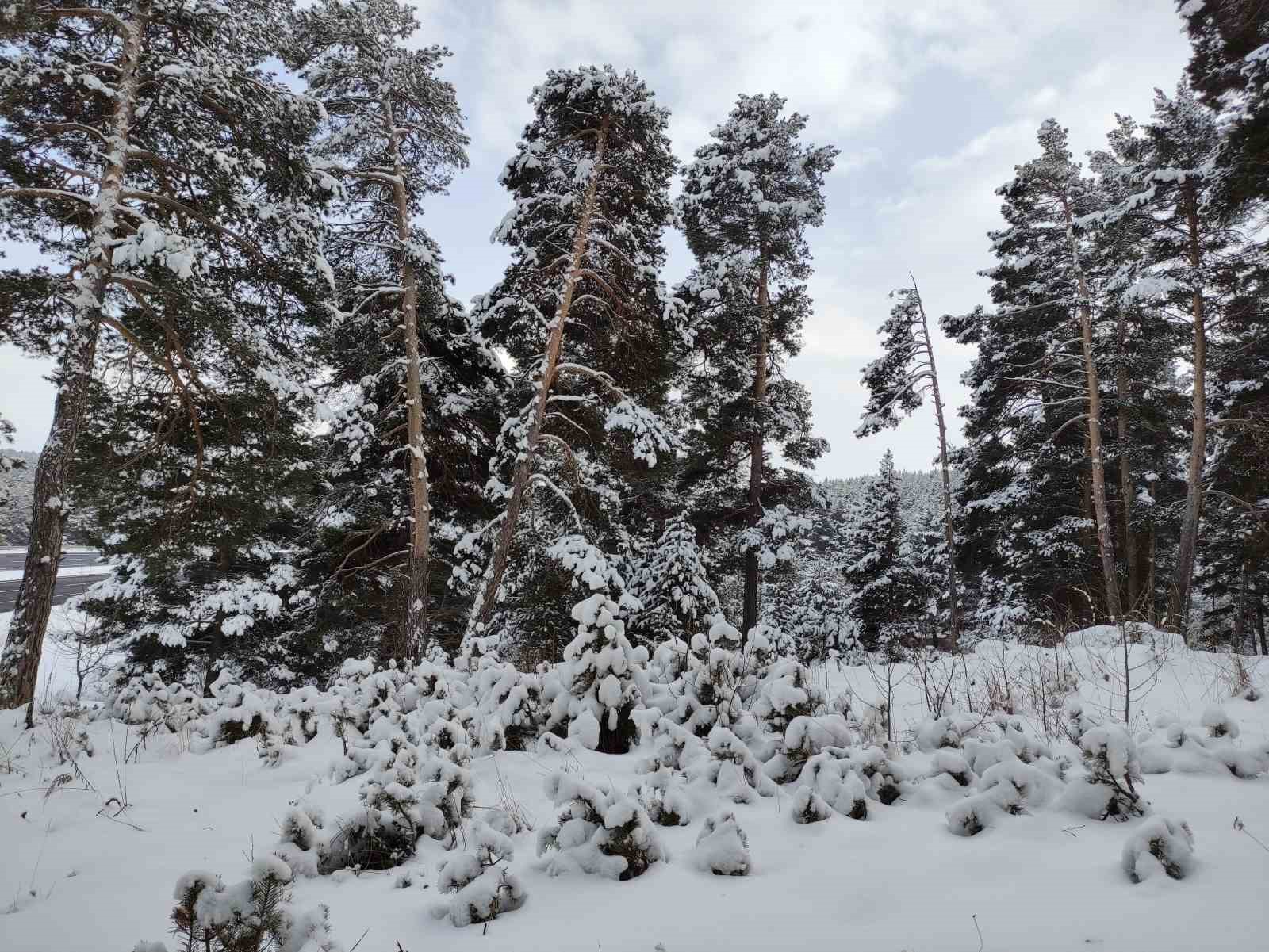 Karla birlikte beyaz örtüyle kaplanan çam ormanları güzel bir görüntü oluşturdu.