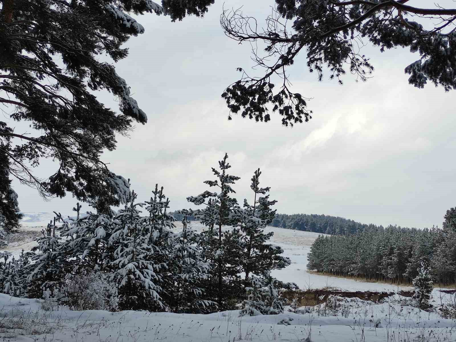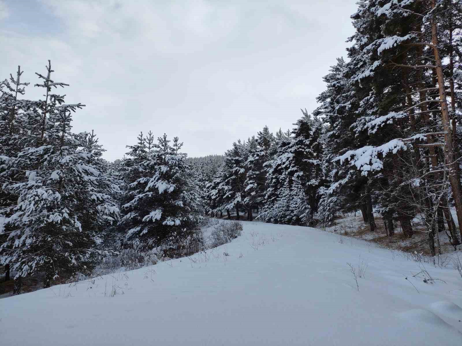 Ardahan’da çam ormanlarının karla kaplanmasıyla, kartpostallık görüntüler oluştu.