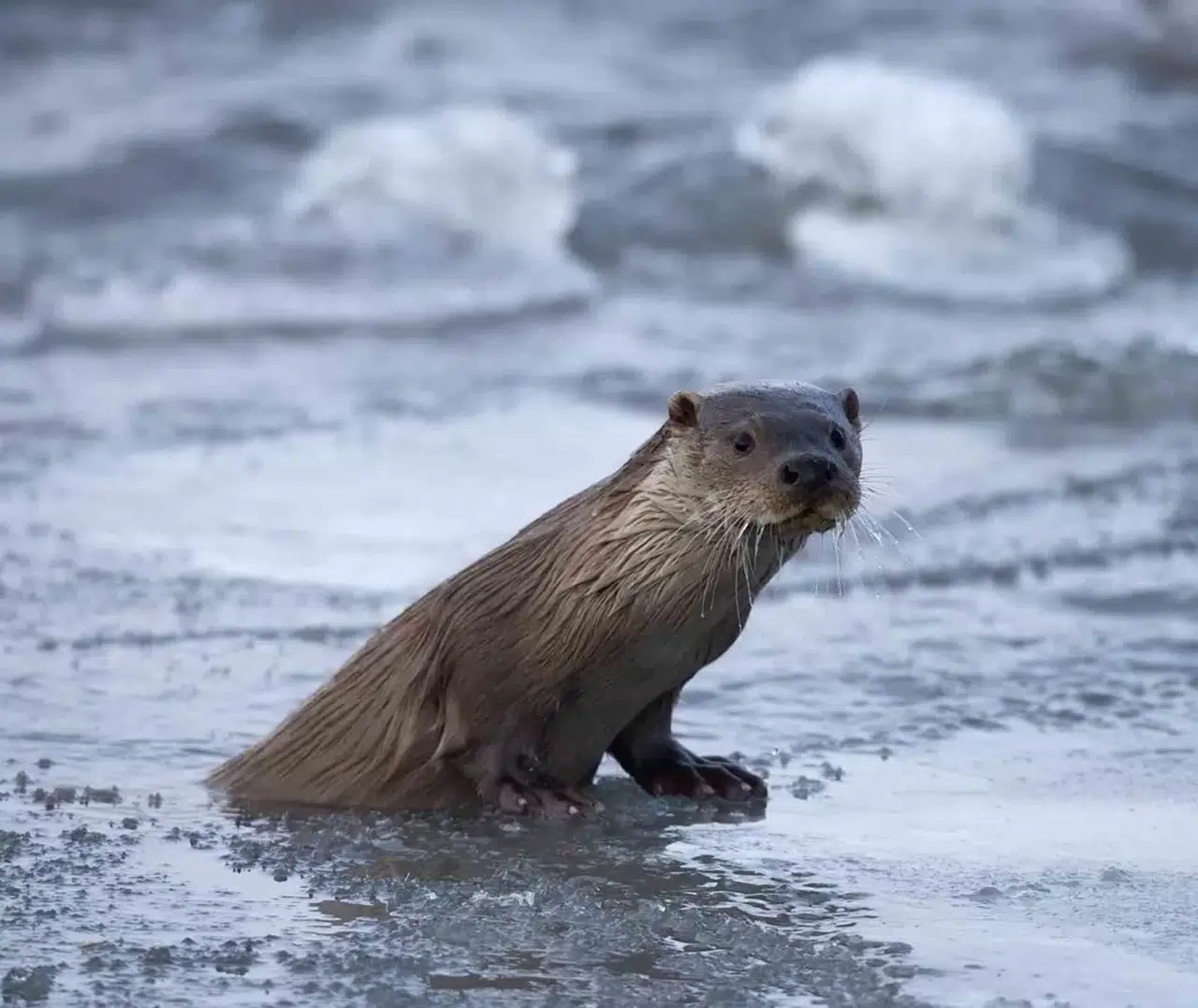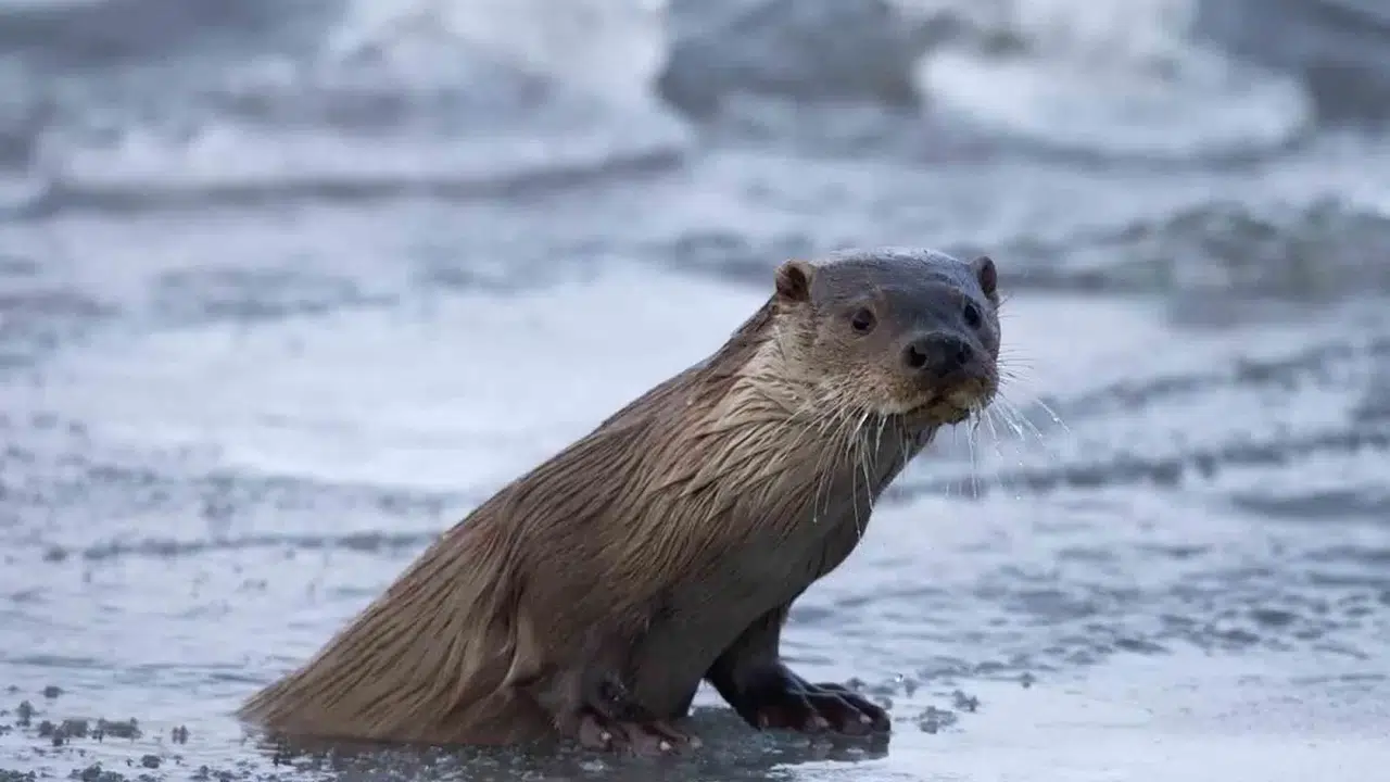 Ardahan’da nesli tükenmekte olan su samuru, buz tutan Kula Nehri üzerinde görüntülendi.