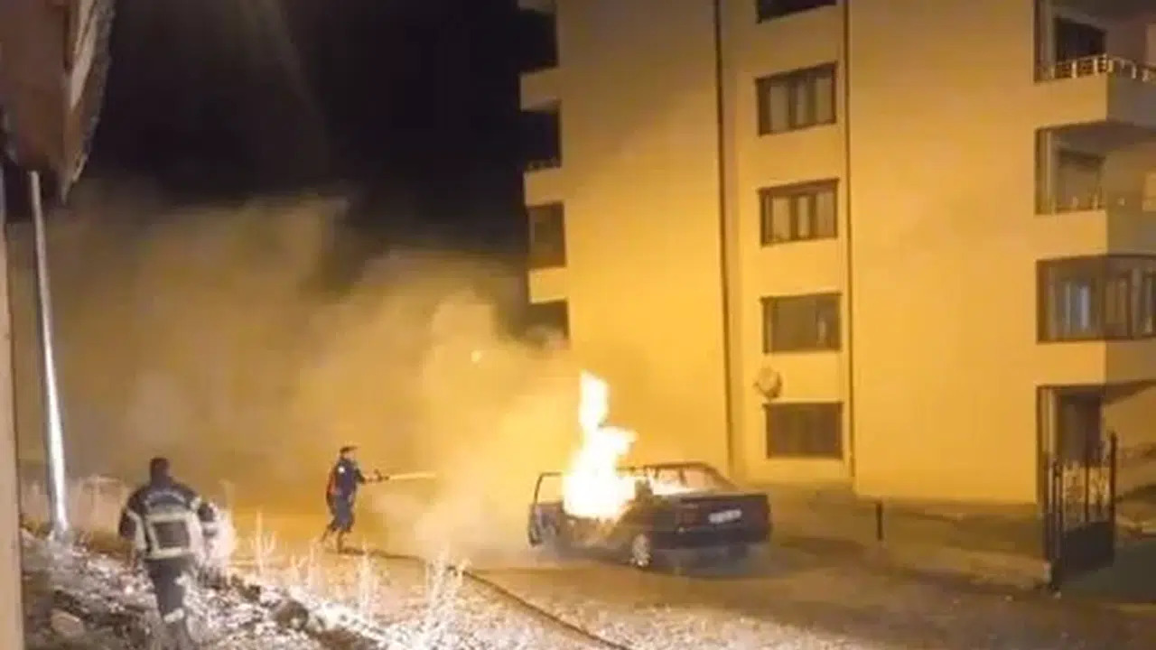 Ardahan’da park halindeki otomobilde yangın çıktı. Otomobilin alev alev yandığı anları çevredekiler cep telefonu kamerasıyla görüntüledi.