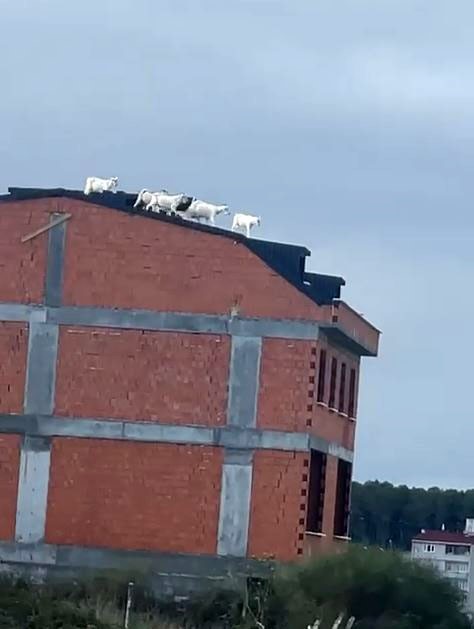 Olay, geçtiğimiz günlerde İstanbul’un Arnavutköy ilçesinde gerçekleşti. Sahibinden kaçan keçiler inşaat halindeki bir binanın çatısına kaçtı. Yaklaşık 10 keçiyi çatıda gören bir vatandaş şaşkınlık içerisinde o anları kayıt altına aldı. Komedi filmlerinin sahnesini aratmayan görüntüler görenleri şoke etti.