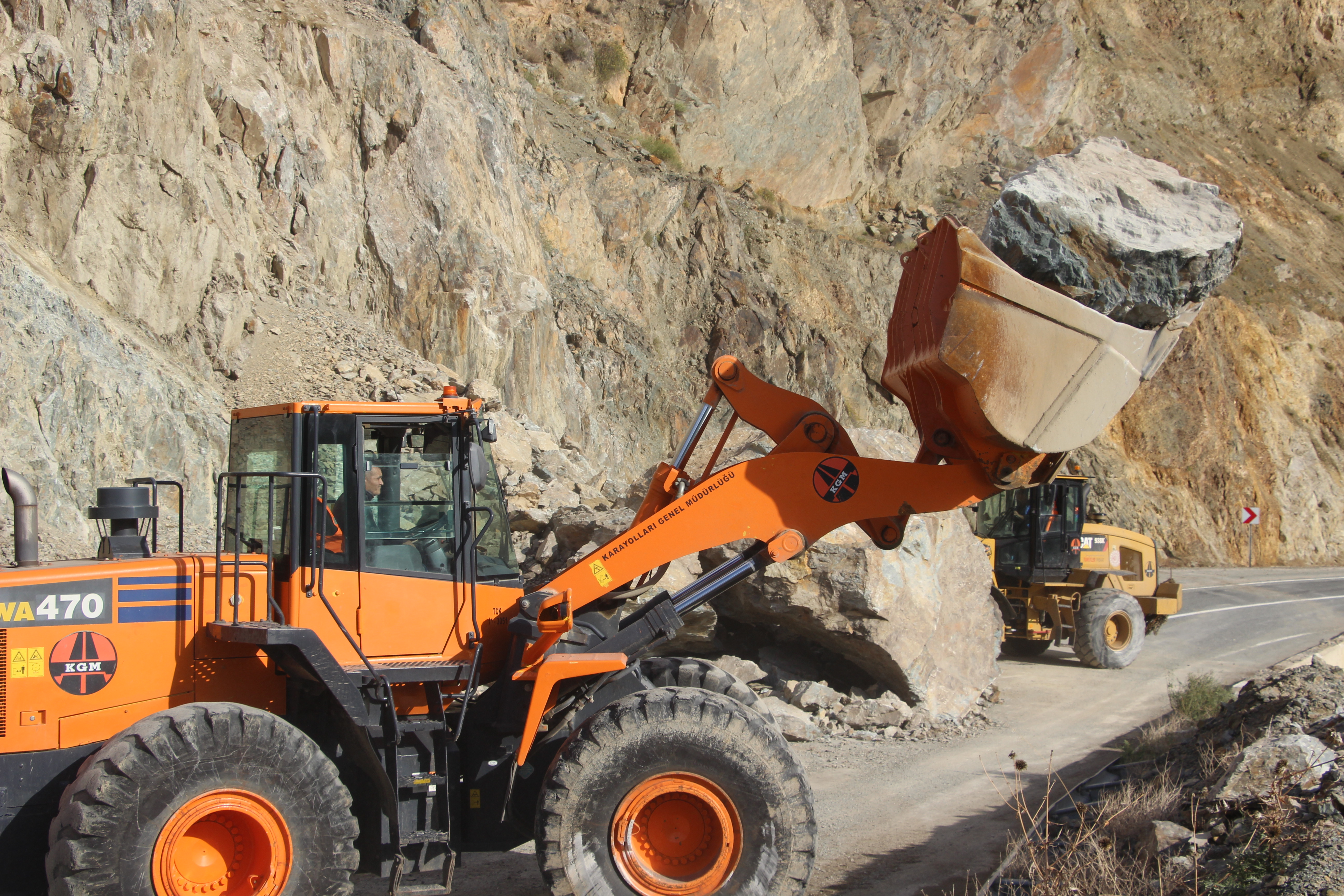 Jandarmanın güvenlik önlemi aldığı bölgede, Karayolları ekiplerinin çalışmaları devam ediyor.