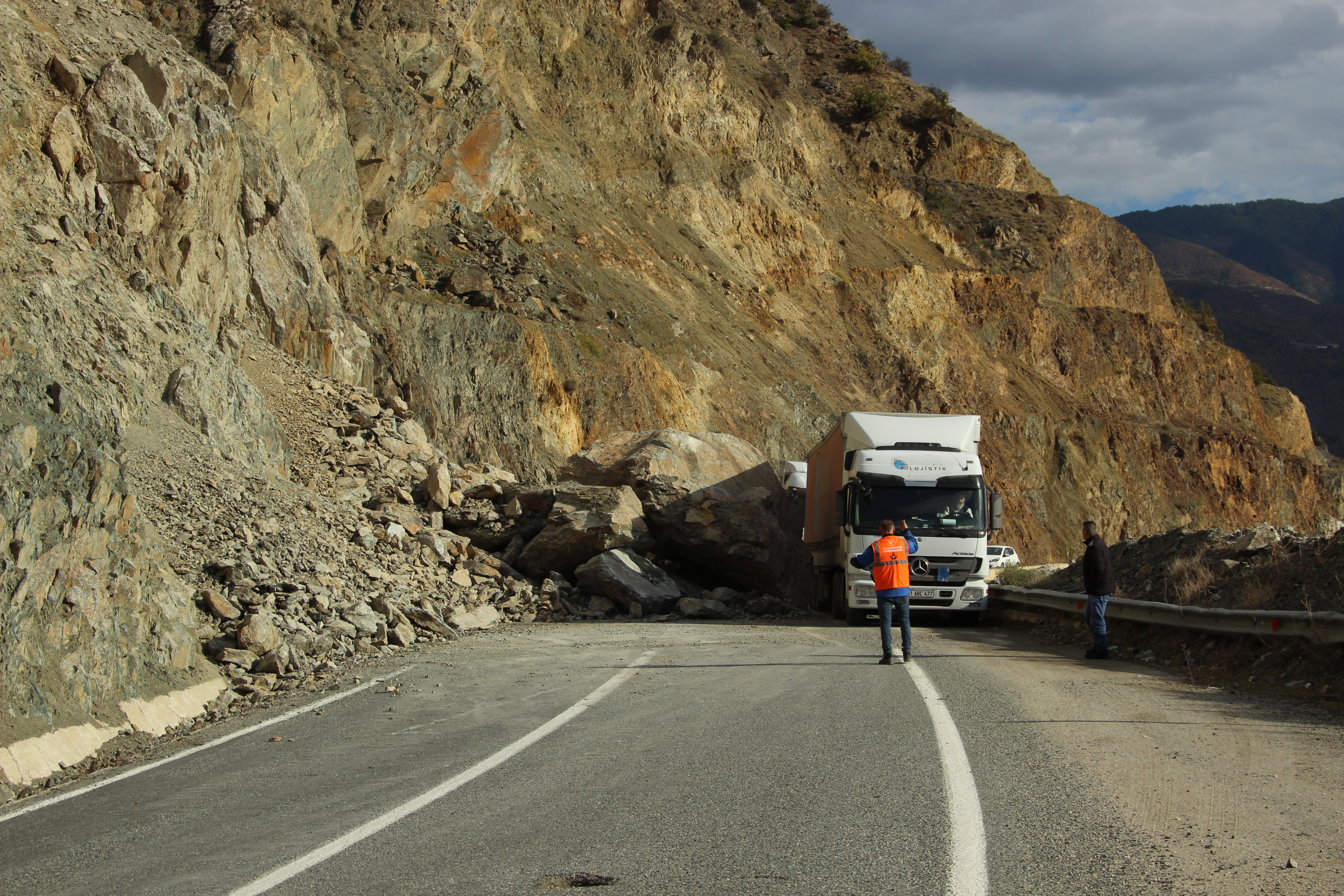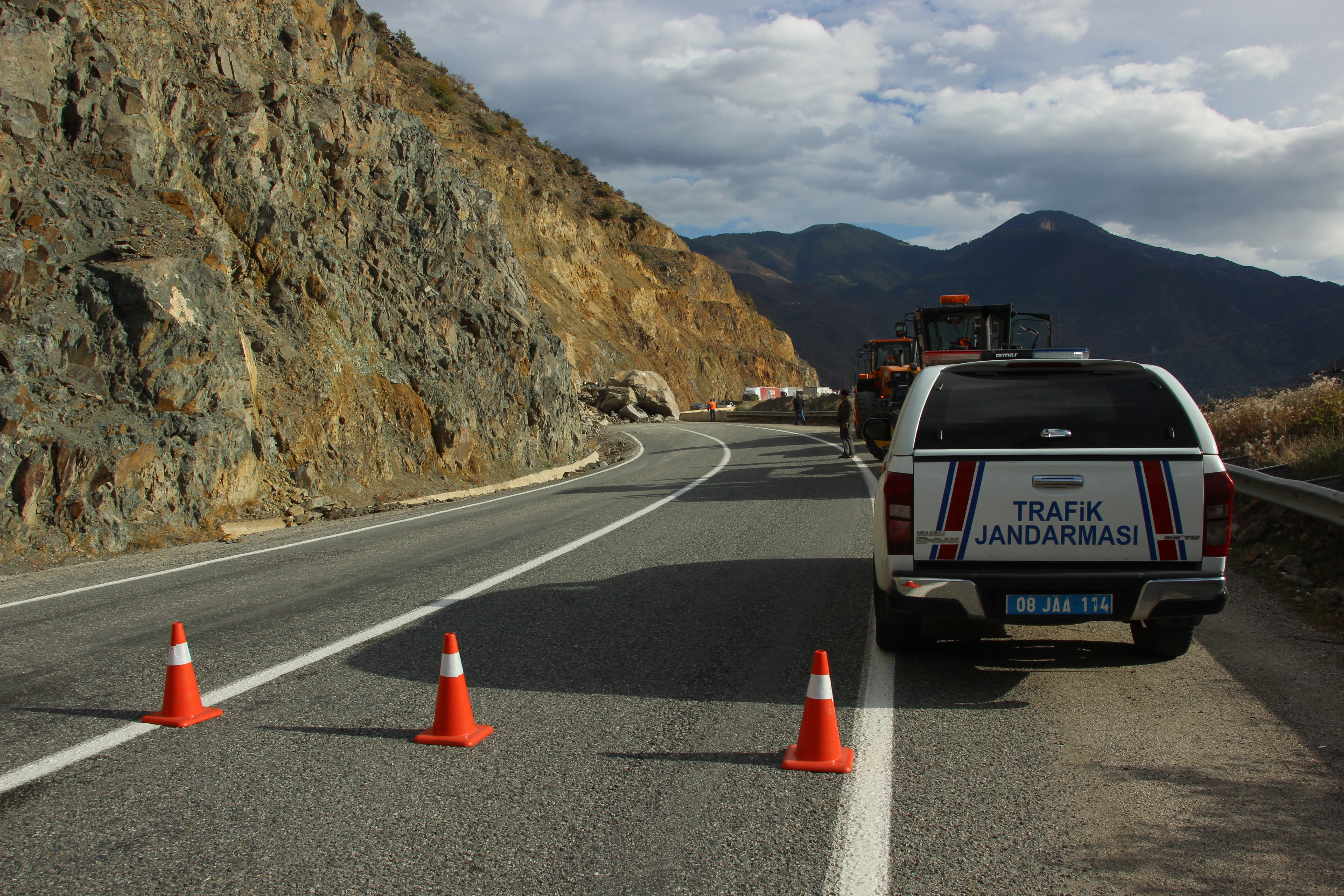 ARTVİN (AA) - Artvin-Ardahan kara yolunda heyelan ve kaya düşmesi sebebiyle ulaşım tek şeritten kontrollü sağlanıyor.