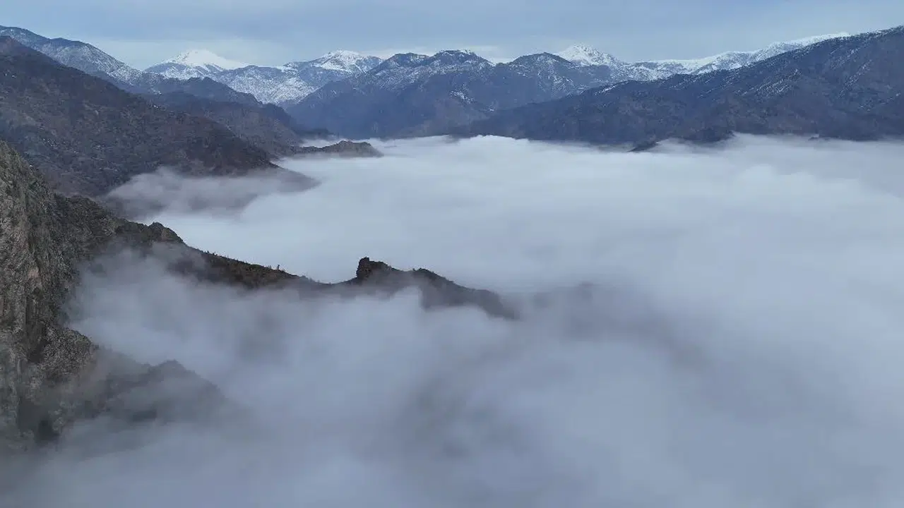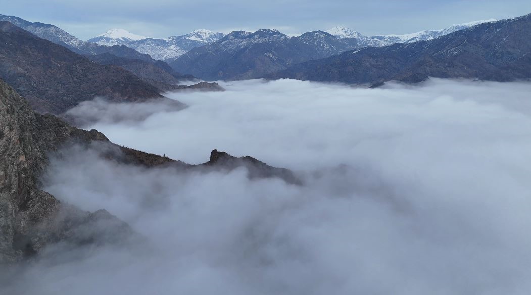 Sis bulutlarının hareketi sırasında ortaya çıkan büyüleyici görüntüler, bölgenin zengin coğrafyasını bir kez daha gözler önüne serdi. Özellikle sabah saatlerinde etkili olan sis, dağların arasından süzülerek adeta dans edercesine gökyüzünü kapladı.