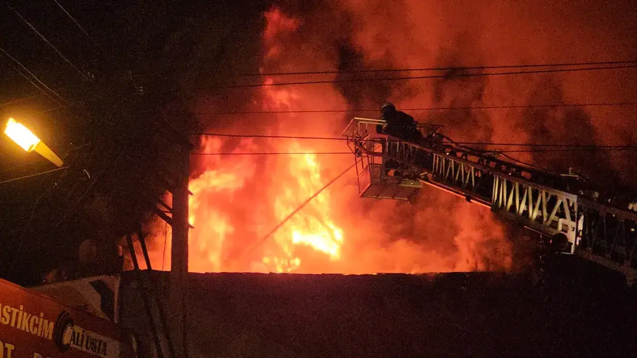 Yangını söndüren itfaiye ekiplerinin soğutma çalışması sürüyor.