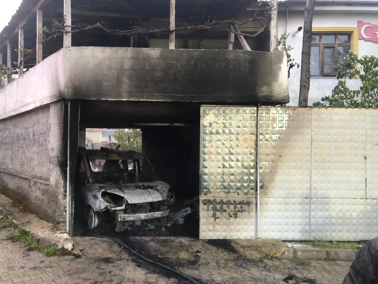 Habip G'ye ait evin garaj bölümünde henüz belirlenemeyen nedenle yangın çıktı.