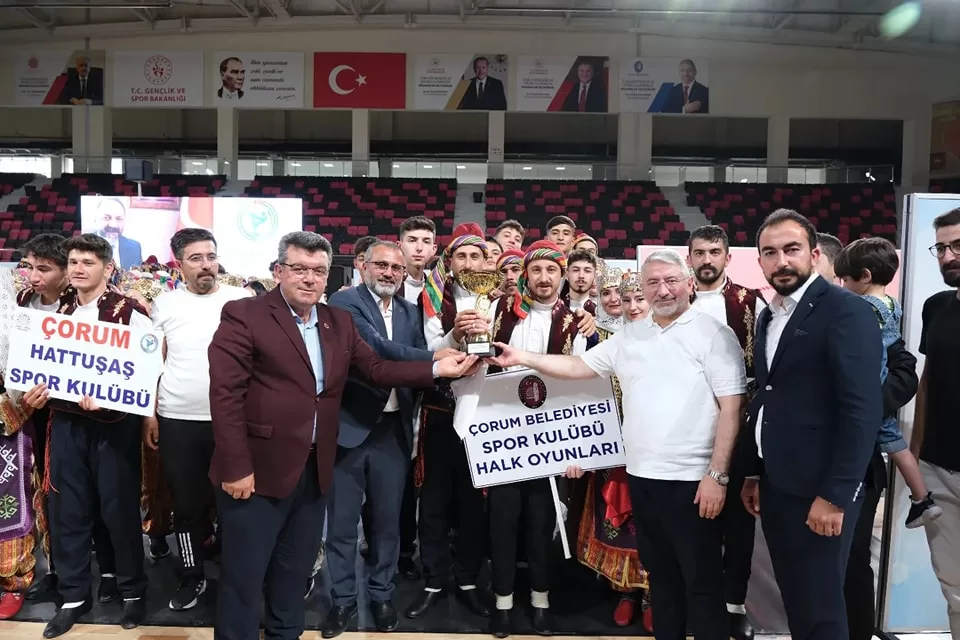 Beş şehir, 26 kulüp, 400 sporcu … Türkiye Halk Oyunları Federasyonu tarafından düzenlenen bölge yarışmasında Çorum Belediyesi Spor Kulübümüz; minikler geleneksel düzenlemesiz dalda 1’inci, büyükler geleneksel düzenlemesiz dalda 1’inci, büyükler geleneksel düzenlemeli dalda 3’üncü olarak iki ekiple; Kadeş Halk Oyunları Spor Kulübümüz, yıldızlar geleneksel düzenlemesiz dalda 3’üncü, yıldızlar geleneksel düzenlemeli dalda 2’nci; Hattuşaş Halk Oyunları Spor Kulübümüz gençler geleneksel düzenlemesiz dalda 1’inci olarak Türkiye Şampiyonasında şehrimizi temsil etmeye hak kazandı. Tüm kulüplerimizi yürekten kutluyorum.
