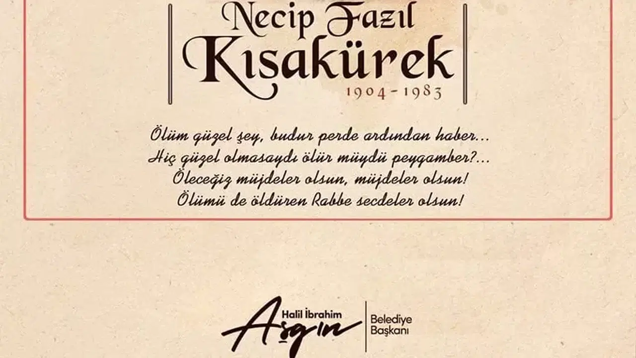 Belediye Başkanı Aşgın, vefatının 41’inci yıl dönümünde Necip Fazıl Kısakürek ile ilgili paylaşım yaptı.