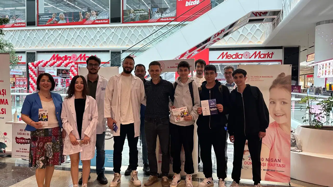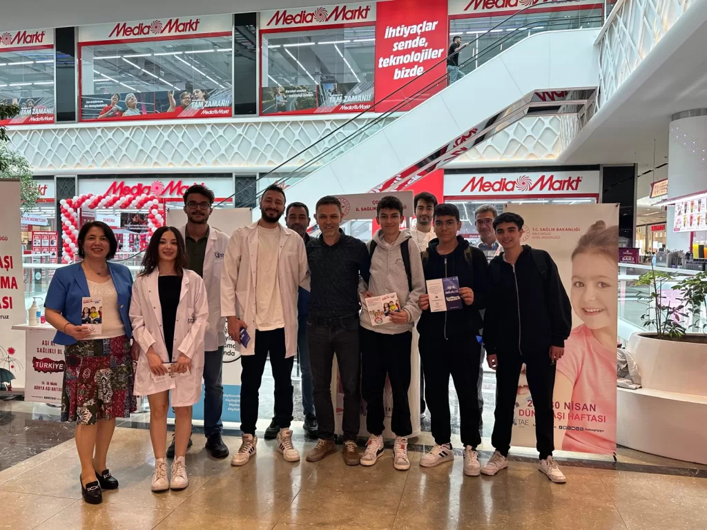 Aşı Haftası etkinlikleri kapsamında Çorum Sağlık Müdürlüğü, Hitit Üniversitesi Tıp Fakültesi öğrencileri, AHL Park Alışveriş Merkezi’nde stant açtı. Stantta vatandaşlara aşı bilgilendirmesi yapılırken, broşürler dağıtıldı.