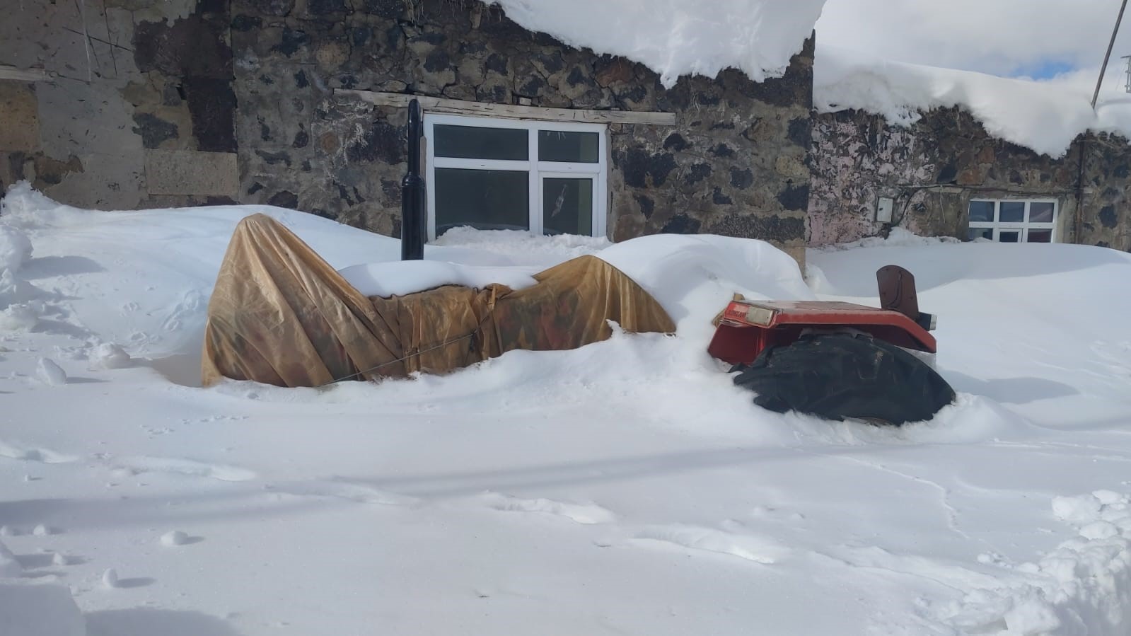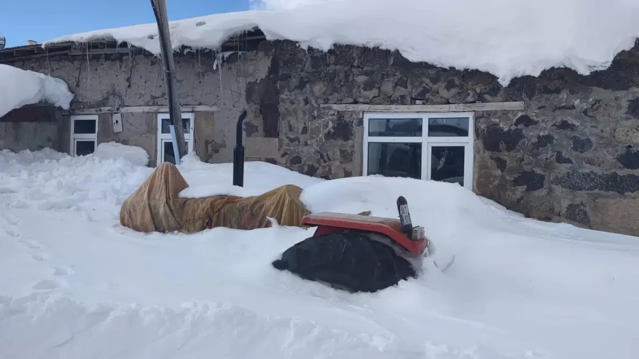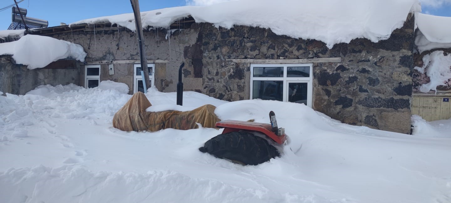 Aşkale’nin Dağyurdu köyünde kar kalınlığı 1,5 metreye yükselirken, vatandaşlar evlerinden çıkabilmek için kar dağlarını temizlemek durumunda kaldı. Köyde yaşayan vatandaşlar yağan kar sonrası ev, ahır ve ot yığınlarının önlerini temizlemek için seferber olurken, park halindeki traktör kar altında kayboldu.