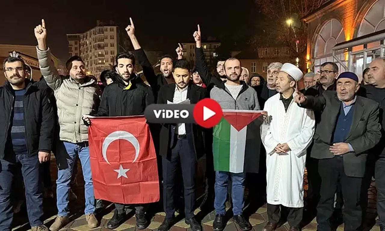 İmam Hatip Tatbikat Camisi'nde toplanan TÜGVA Çorum üyeleri, ABD'ye tepki gösterdi.