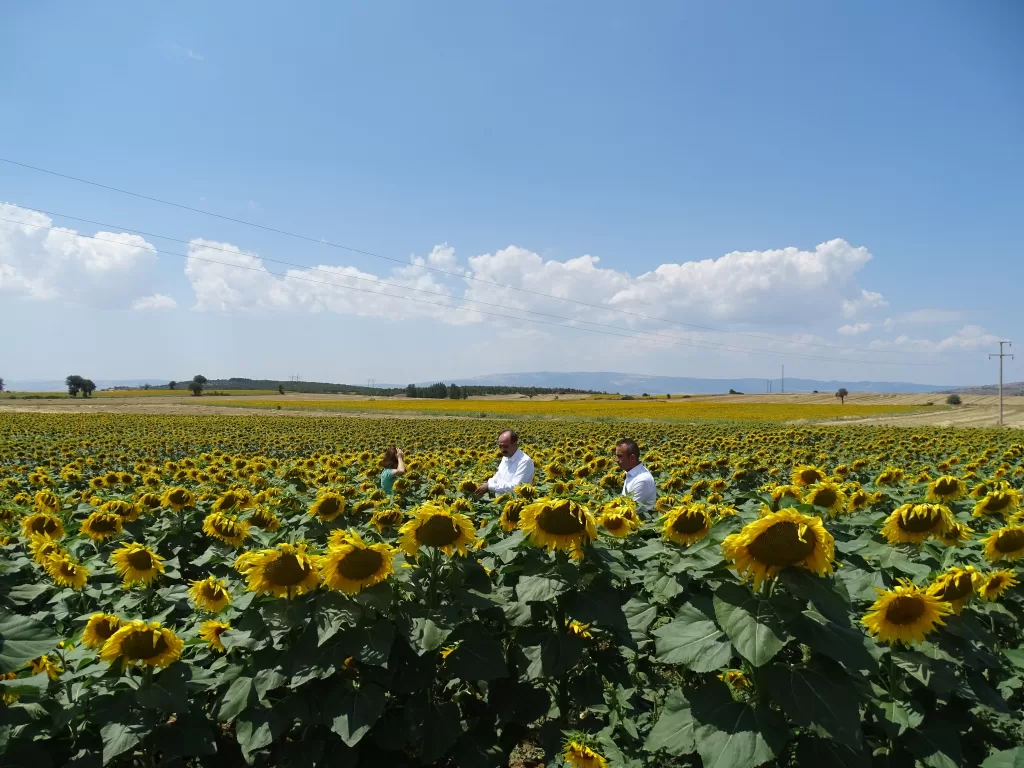 Çorum Tarım ve Orman İl Müdürü Hayrullah Göktekin, Tarım ve Orman Bakanlığının Tarım Arazilerinin Kullanımının Etkinleştirilmesi Projesi (TAKE) kapsamında %50 hibeyle dağıtılan ayçiçeği tohumlarının ekildiği arazilerde incelemelerde bulundu.
