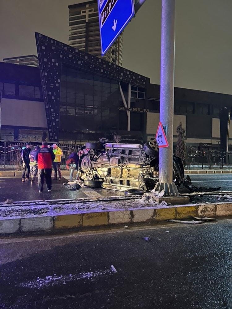 Aydınlatma Direğine Çarpan Cip Yan Yattı: 6 Yaralı