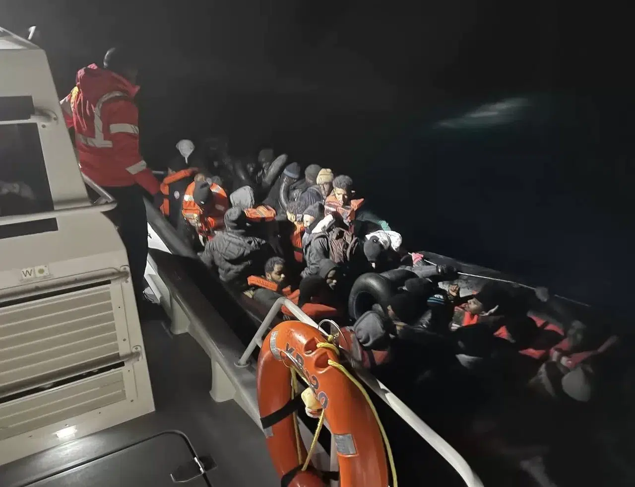 Çanakkale’nin Ayvacık ilçesi açıklarında Sahil Güvenlik ekiplerince 77 kaçak göçmen yakalandı.