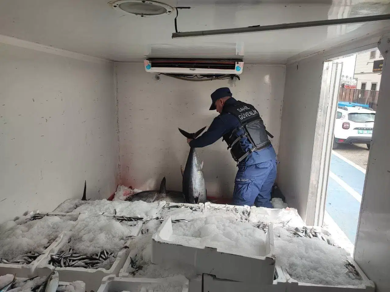 Sahil Güvenlik Kuzey Ege Grup Komutanlığı ekipleri, Ayvacık ilçesine Babakale köyü limanında soğuk hava deposuna sahip bir kamyonette arama yaptı. Arama da ekipler, avlanması yasak olan 11 orkinos ele geçirdi. Orkinoslara el konuldu. Nakliye sahibine toplam da 26 bin 242 TL idari para cezası uygulandı.