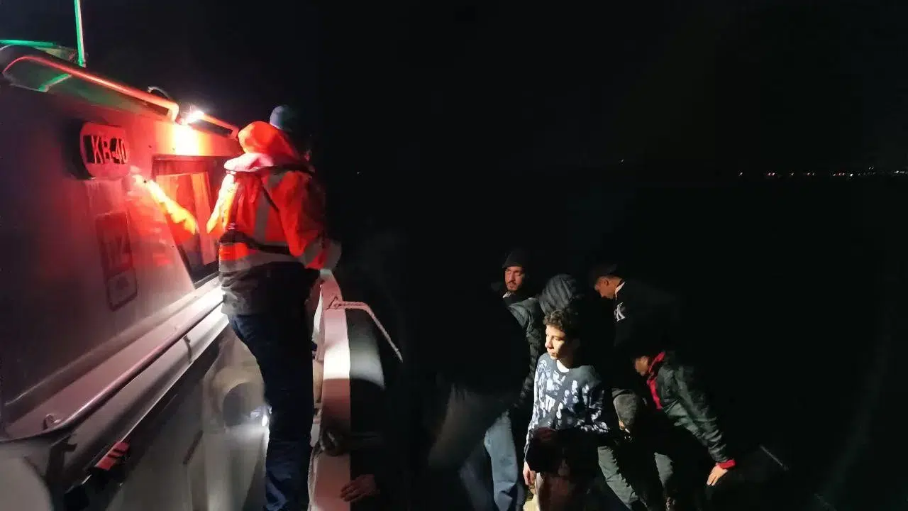 Edinilen bilgiye göre, Balıkesir ili Ayvalık ilçesi açıklarında görevli Sahil Güvenlik Botu (KB-40) tarafından tespit edilen hareketli lastik bot durduruldu. Bot içerisindeki onu çocuk 24 düzensiz göçmen yasadışı yollardan Yunanistan’ın Midilli (Lesvos) Adasına geçmek isterken yakalandı. Sahil Güvenlik Botuna alınan düzensiz göçmenler Ayvalık’ta karaya çıkartılarak İl Göç İdaresi yetkililerine teslim edildi.