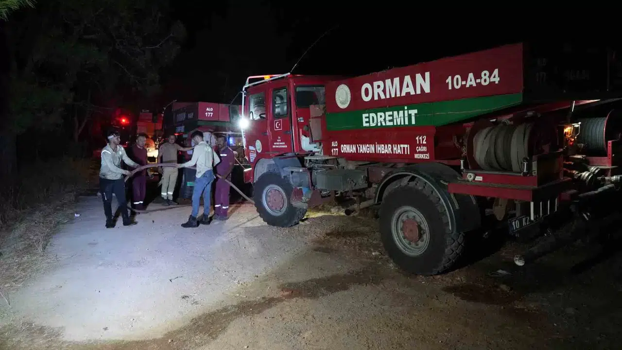 Edinilen bilgiye göre, Ayvalık’ın turistik Küçükköy Mahallesi’nde saat 21.15 sıralarında çıkan orman yangını şiddetli poyrazında etkisiyle kısa sürede büyüdü. Yazlık konutların olduğu bölgede ekipler kısa sürede yangına müdahale etti. Yangını kontrol alma çalışmalarına; Balıkesir Orman Bölge Müdürlüğü’ne ait 10 arazöz, 6 su ikmal aracı, 1 ilk müdahale aracı, 2 hizmet aracı, 6 dozer, 1 treyler ve Balıkesir Büyükşehir Belediyesi ve Ayvalık Belediyesi ile diğer kamu kurum ve kuruluşlarından gelen 20 araç ve iş makinesi ile birlikte toplam 46 araç 60 personel görev yaptı. Yangın saat 00.30 sıralarında kontrol altına alındı. Yangın bölgesinde ekipler soğutma çalışmalarına devam ediyor.