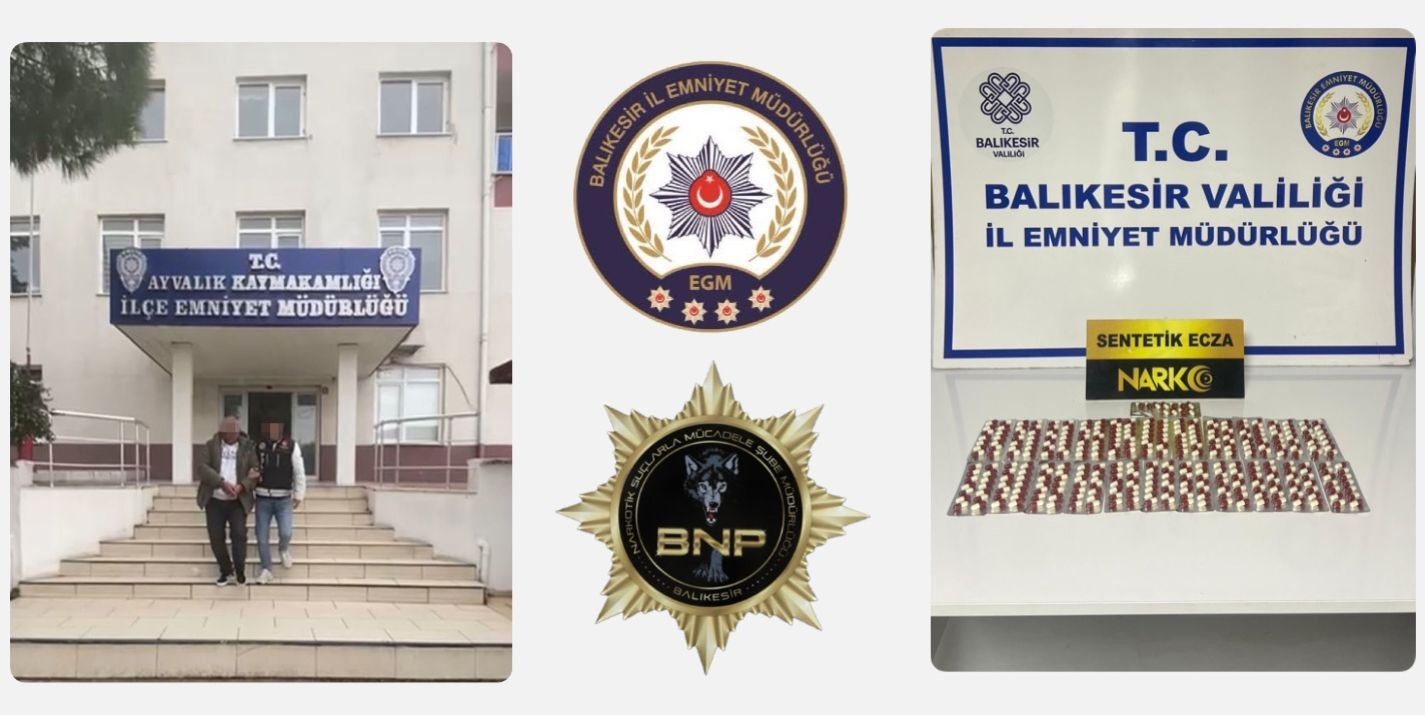 Edinilen bilgiye göre, Ayvalık Narkotik Suçlarla Mücadele ekiplerince Ayvalık ilçesinde yapılan çalışmada; 330 adet sentetik Hap Ele geçirildi. Uyuşturucu madde ticareti suçundan adli makamlara sevk edilen K.K(27) tutuklanarak ceza evine gönderildi, Ayrıca uyuşturucu madde ticareti suçundan 17 Yıl 17 Ay kesinleşmiş ceza ile hakkında yakalama kararı olan H.K.(49) yakalanarak ceza evine sevk edildi.