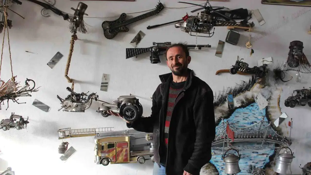 Sivas’ın Suşehri ilçesinde yaşayan demir doğrama ustası Mehmet Çataltaş, atık demir parçalarına yeniden hayat veriyor. Küçük yaşlarda babasının oyuncak alamaması üzerine kendi oyuncaklarını yapmaya başlayan Çataltaş, yıllar içinde bu becerisini bir sanata dönüştürdü.